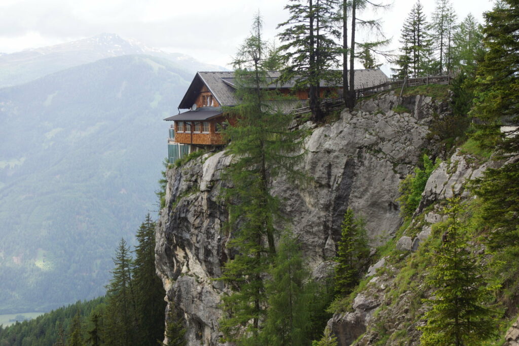 Nach dem Tristacher See ging es weiter bergauf zur Dolomiten Hütte. Die Dolomiten Hütte klebt an einem Berghang mit spektakulärem Blick auf die Dolomiten. (http://dolomitenhuette.at ).Die Dolomitenhütte ist neu renoviert und erweitert worden und bietet unter anderen auch Gästezimmer an. Zum Mittag gab es typische Hüttenspezialitäten.