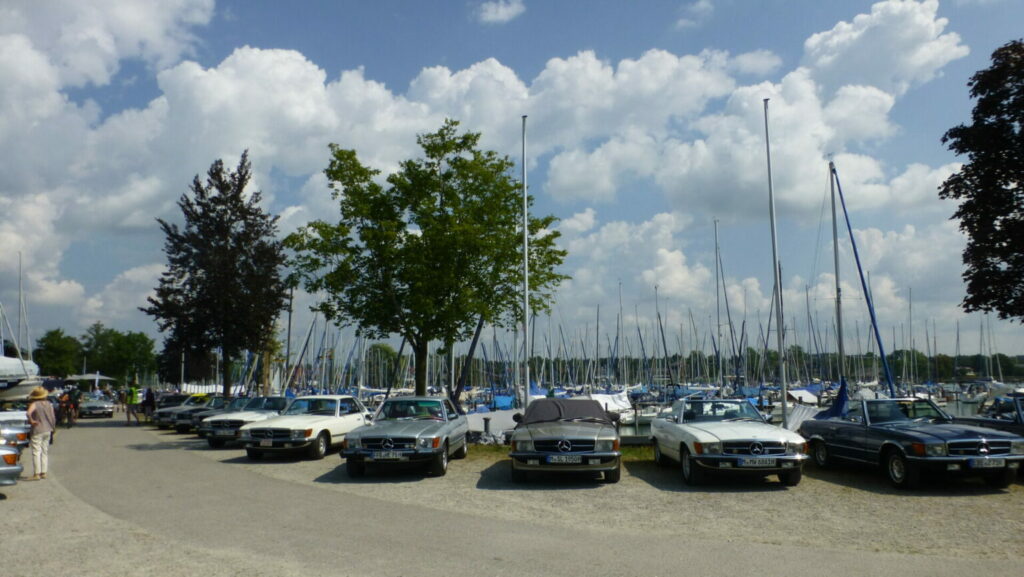 70 Clubmitglieder und Freunde kamen mit ihrem Cabrio oder Coupe der Baureihe 107. Damit waren alle Parkmöglichkeiten im Segelhafen ausgenutzt.