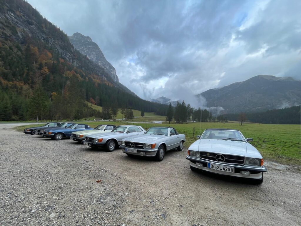 Auf der Rückfahrt stellten wir unsere Fahrzeuge noch einmal für ein Foto mit dem Ahornboden zusammen.