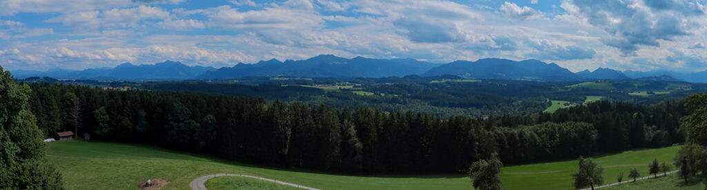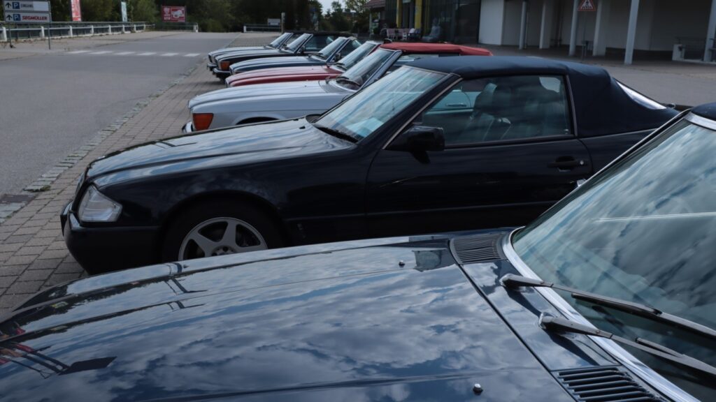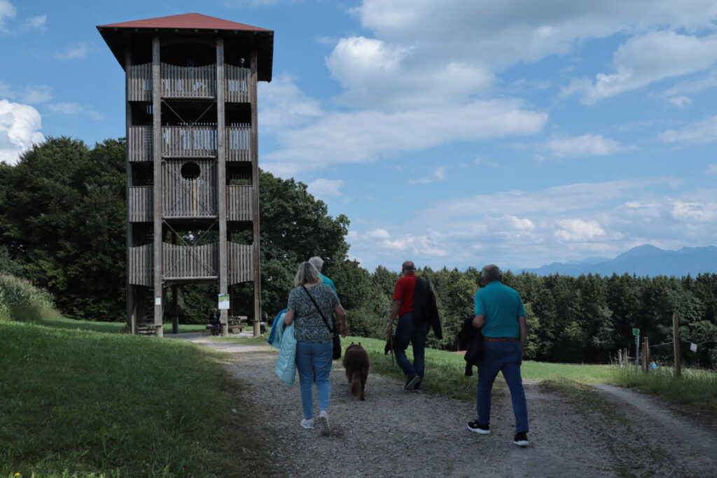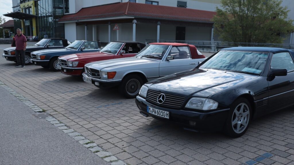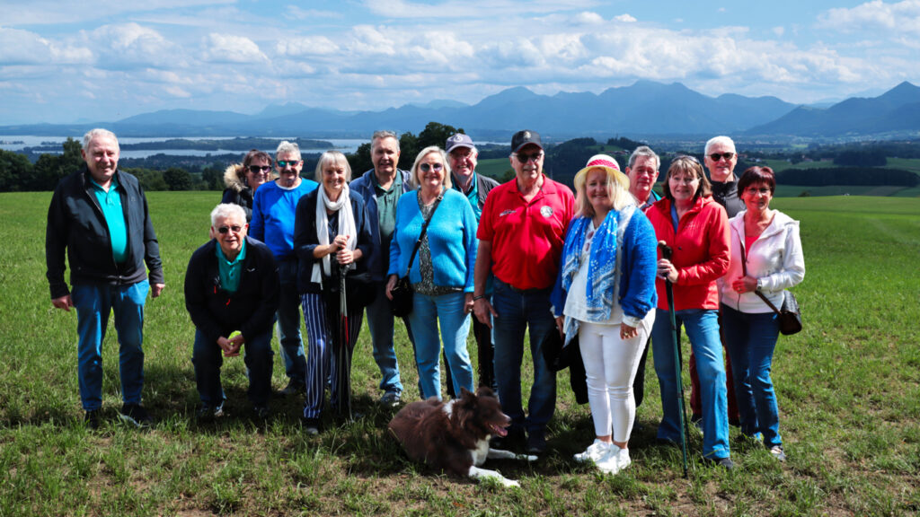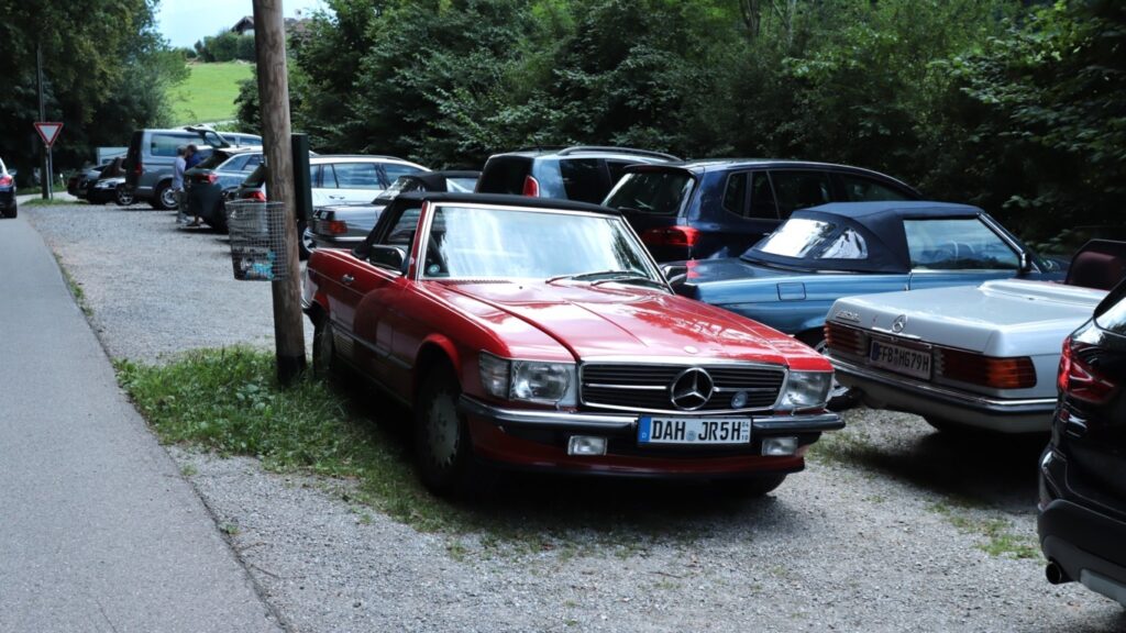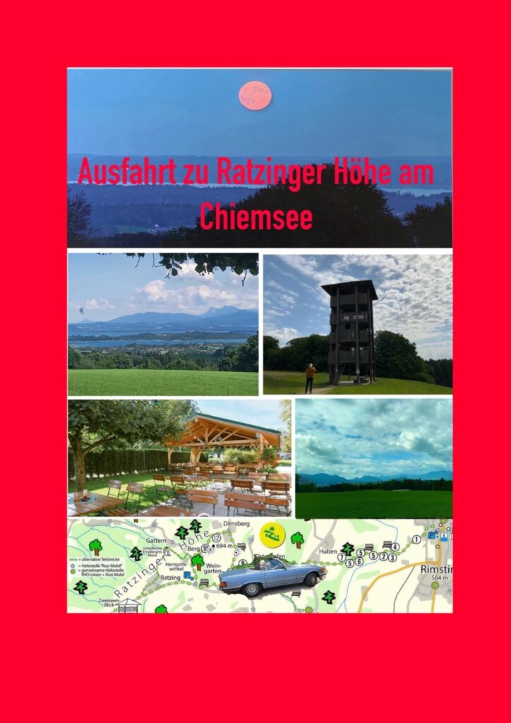 Die Abfahrt begann um 09.30 Uhr von Parsberg bei München mit 8 Roadster der Mercedes Baureihe 107 über Rott /Inn (Besichtigung des Grabes von F.J. Strauß) zu einem schönen Biergarten unterhalb der Ratzinger Höhe. Danach ging es nach dem Mittagessen gleich zum Aussichtspunk der Ratzinger Höhe. Von dort aus dann zu Fuß zu einem Aussichtsturm auf die Südseite des Hügels zum Genießen des Alpenpanoramas einschließlich Kampenwand.