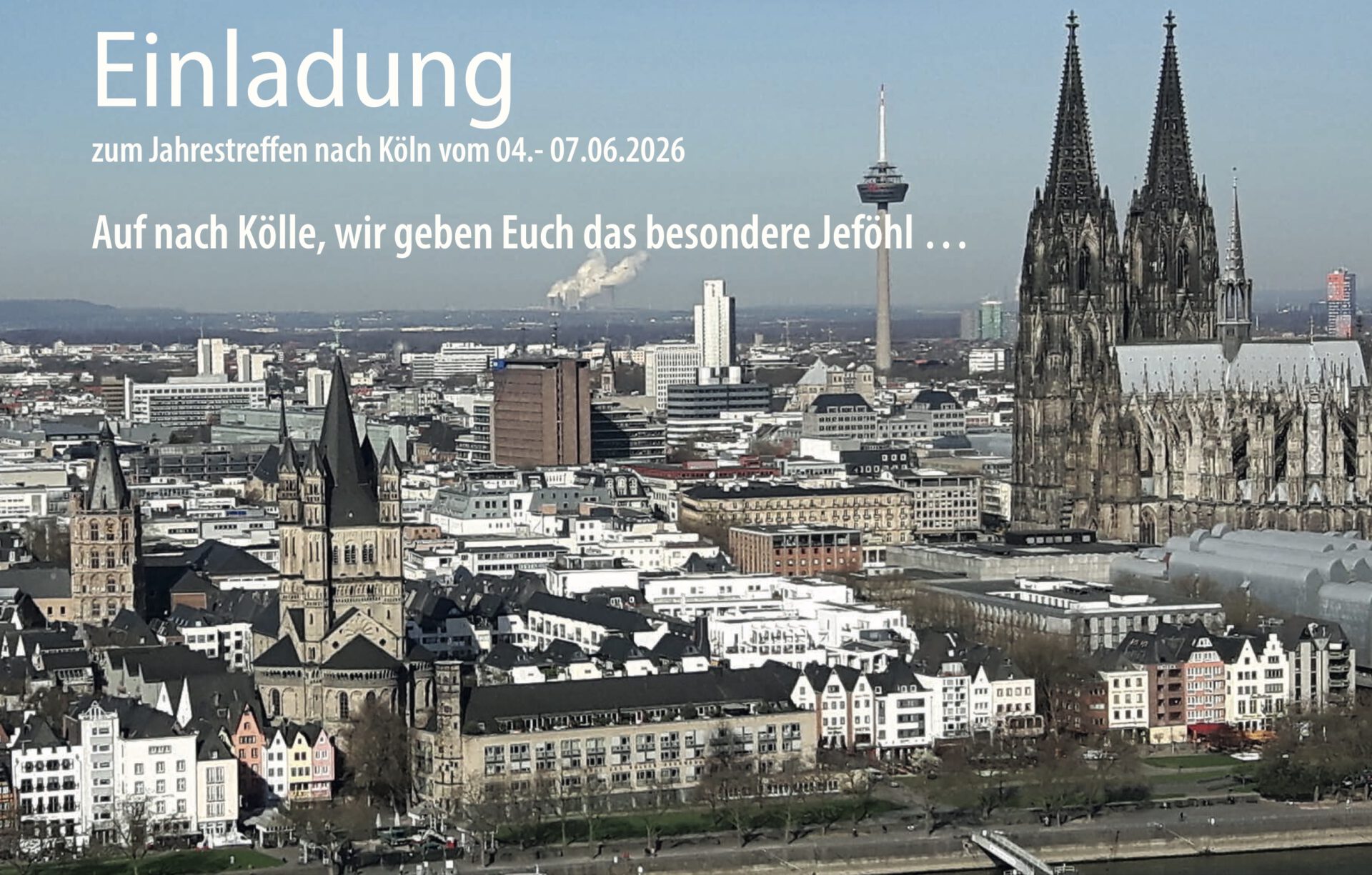 wir sind in großer Vorfreude auf Euch und Eure 107er, seid herzlich eingeladen zum 34. Jahrestreffen, dieses Mal bei uns in Kölle!