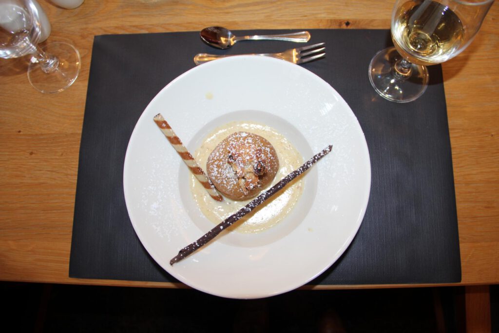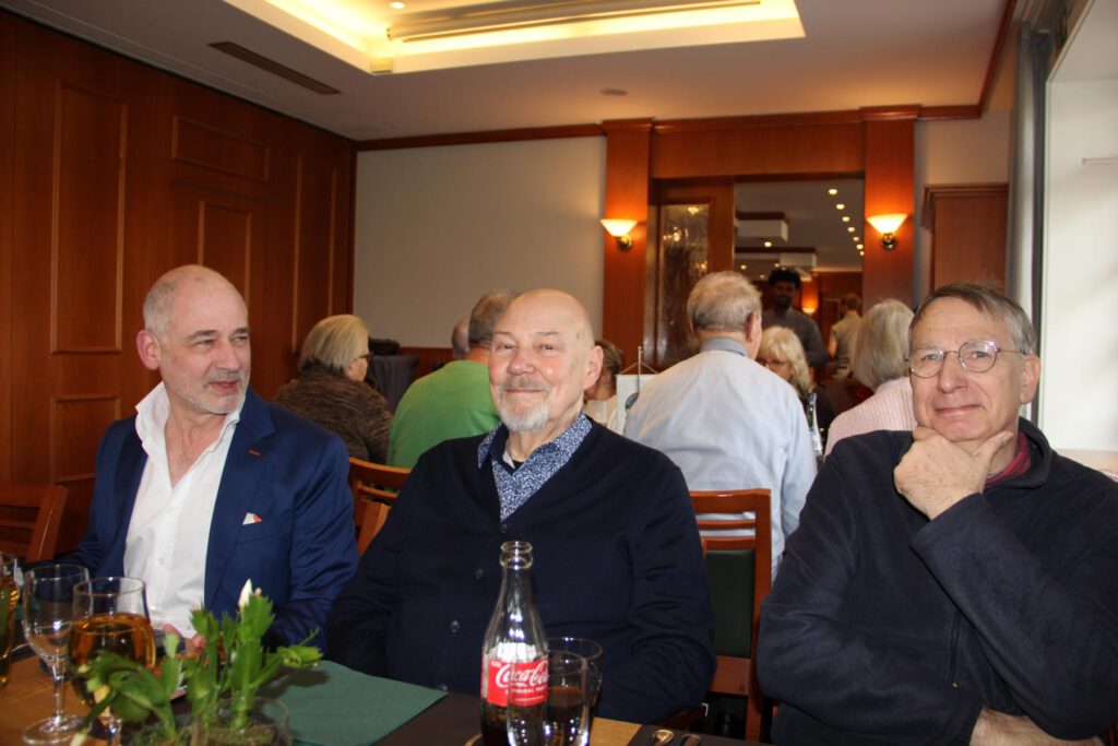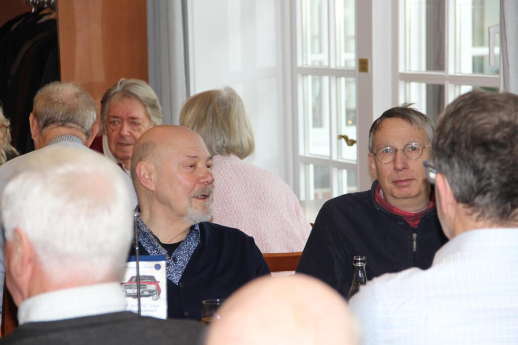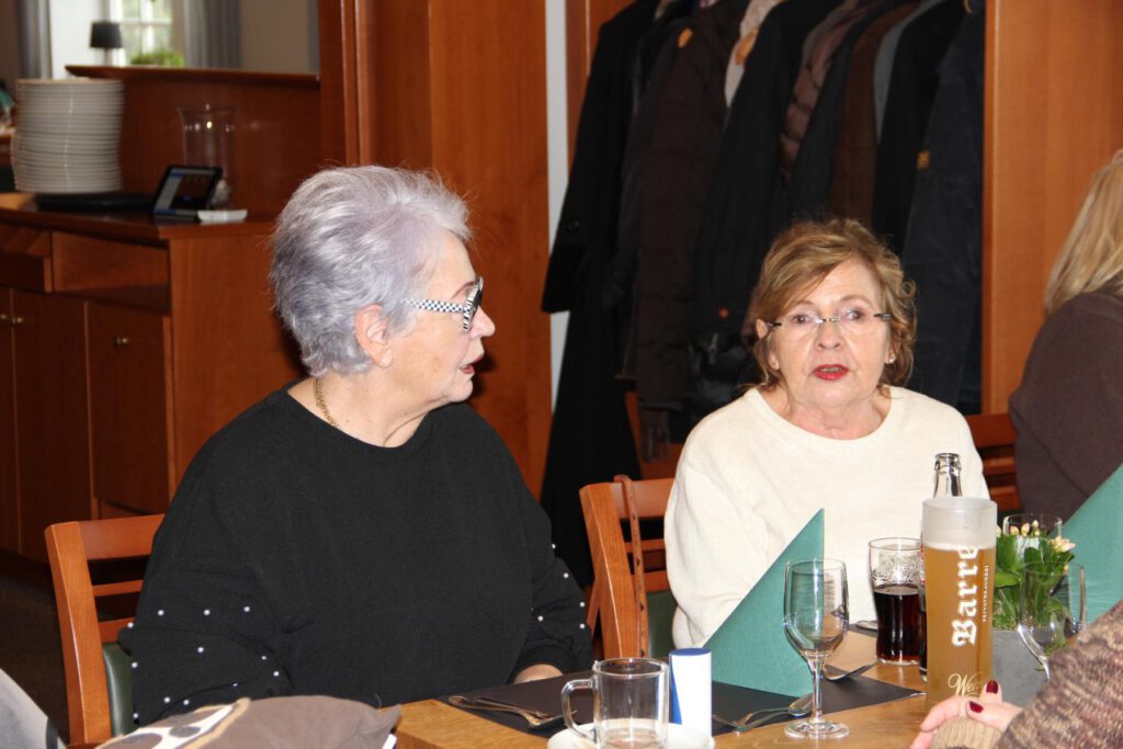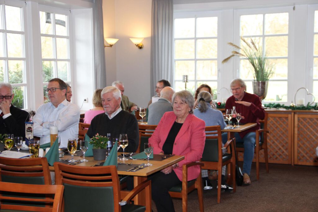 Ein für uns abgeteilter Raum – wir waren 23 Personen – war gemütlich eingedeckt, und die Schlemmerei begann mit einer Hainhäuser Kartoffelsuppe. Es folgten Grünkohl, Kassler, Kohlwurst und Salzkartoffeln mit Senf. Die aufmerksamen und freundlichen Servicekräfte lieferten ununterbrochen dampfenden Nachschub. Den Abschluss krönte „Omas Bratapfel mit Vanillesauce“ – total lecker. Die stetige Geräuschkulisse zeugte von angeregter Unterhaltung, und ich sah nur heitere und zufriedene Gesichter.