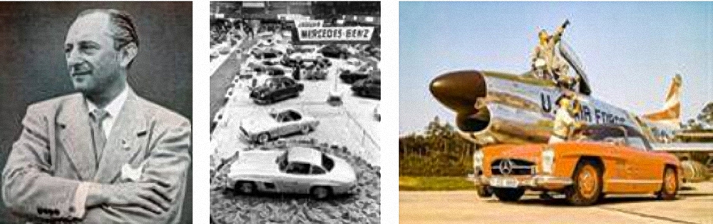 Während Mercedes-Benz die Serienentwicklung des 190 SL mit Nachdruck vorantreibt, wird zudem kurzfristig das 300 SL Coupé als Hochleistungssportwagen entwickelt, dessen Technik auf dem Rennsportwagen von 1952 basiert. Die Messepremiere beider Sportwagen im Februar 1954 ist eine Sensation. Schon im Sommer 1954 kommt der 300 SL „Gullwing“ (W 198) auf den Markt, der in New York noch als Vorserienmodell präsentierte 190 SL (W 121) folgt 1955. Und vor allem dieser kompakte Roadster wird zum Zugpferd von Mercedes-Benz für den Verkauf in den USA: Zwischen 1955 und 1960 beträgt sein Anteil 17,75 Prozent aller in die USA gelieferten Mercedes-Benz Personenwagen – die Einschätzung von Maximilian E. Hoffman hat sich bewahrheitet.