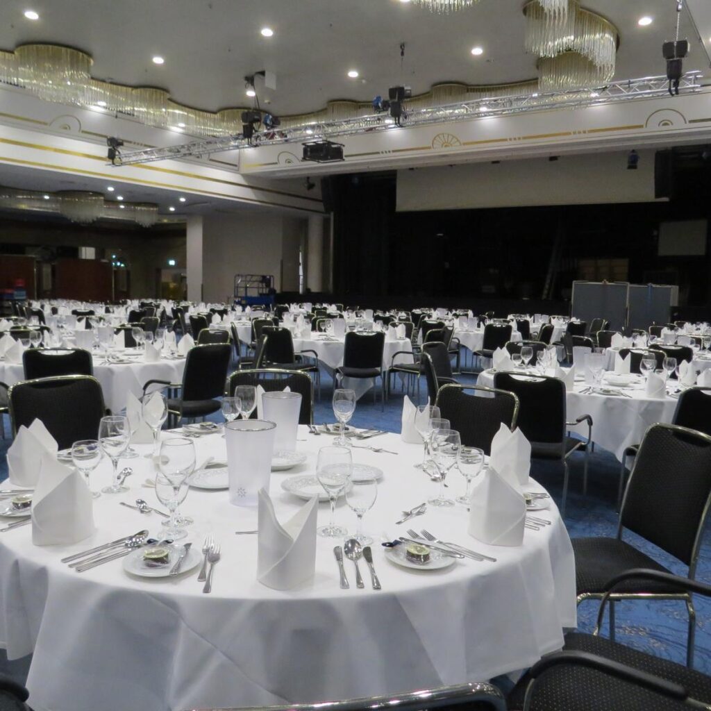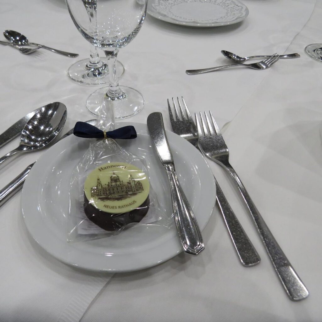 Ab 19 Uhr öffneten sich die Türen des Festsaals, und an hübsch gedeckten runden Achter-Tischen wurde Platz genommen. Auf jedem Beilagenteller lag ein „Hannover-Taler“ zur Begrüßung. Durch den Abend führte Susi Brandt, Moderatorin beim MDR, ebenfalls stolze Besitzerin eines 107ers, welchen sie ihren Eltern für diesen Tag zur Verfügung gestellt hatte, da diese Silberhochzeit feierten.