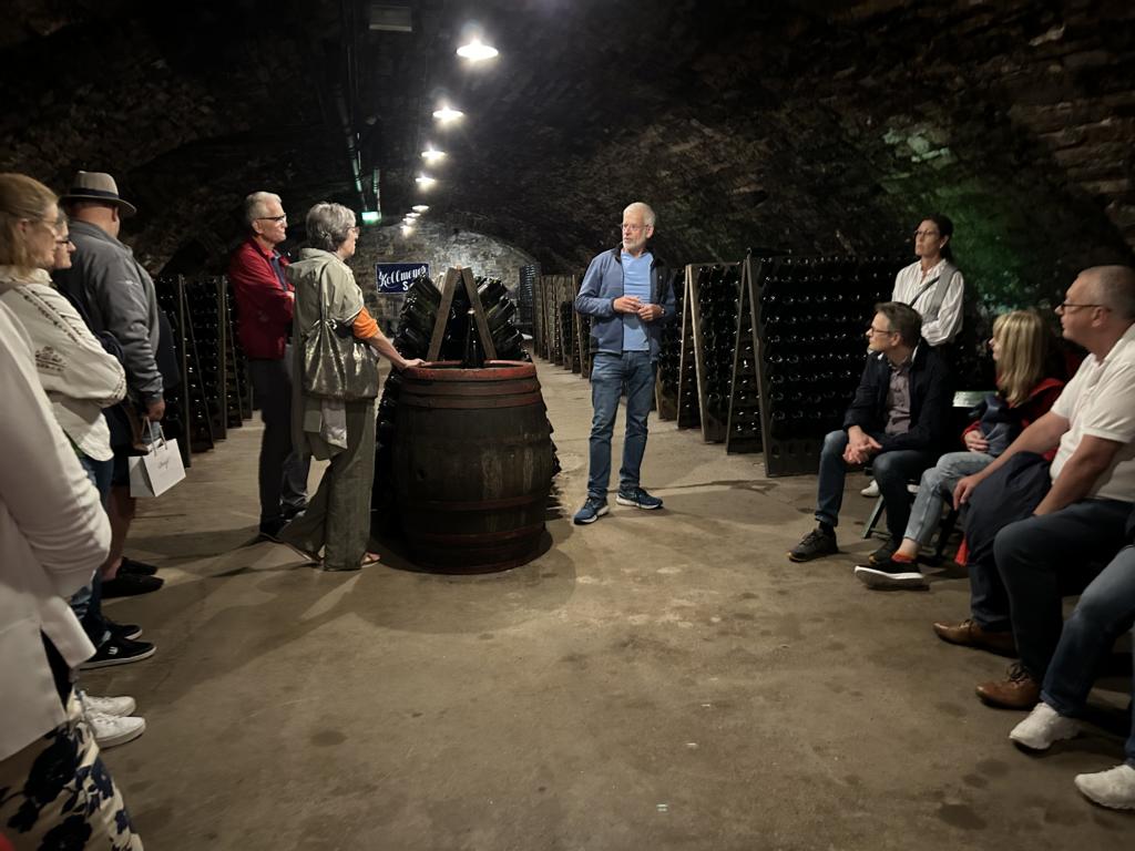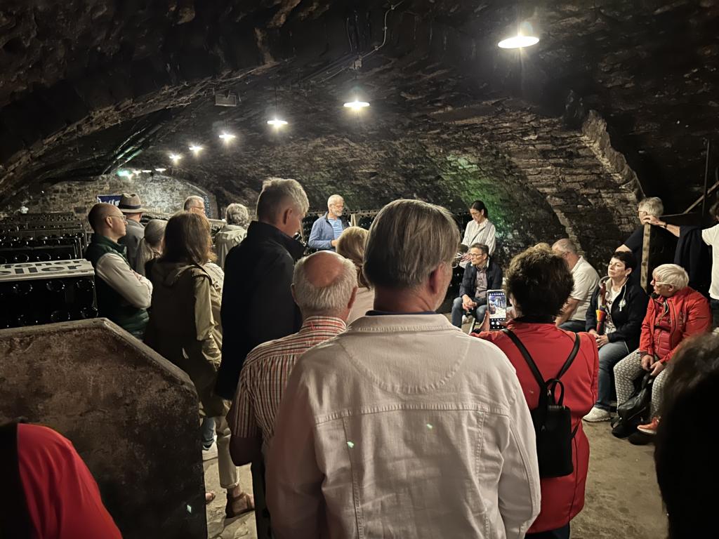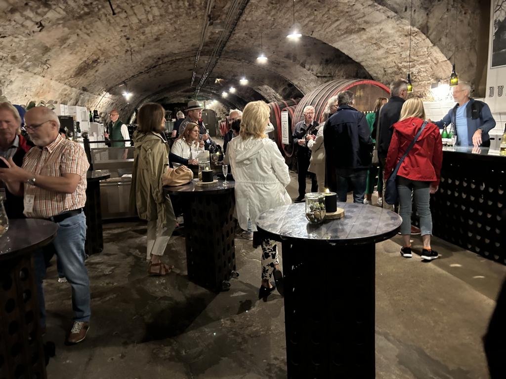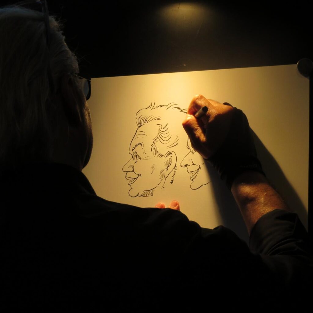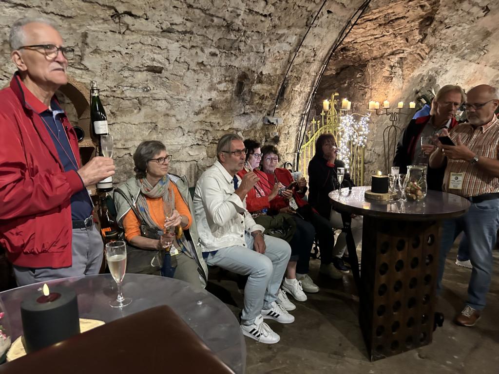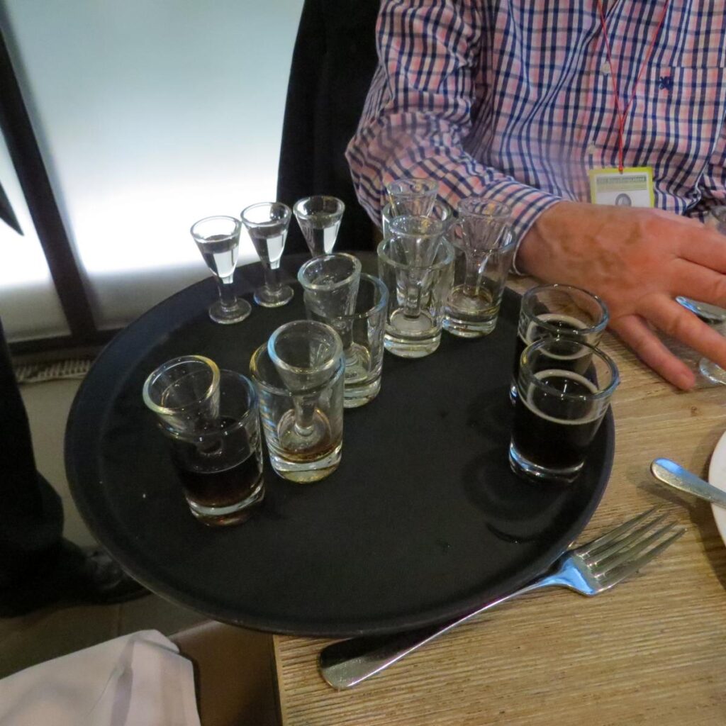 Dort empfing man uns bei einem leckeren Aperitif mit den Bruchmeistern und dem Karikaturisten Lothar Krebs. Alle fanden in den Innenräumen bequem Platz. Lars begrüßte unsere Gäste und stellte den Zeichner vor, der den ganzen Abend zur Verfügung stand, um für jeden, der wollte, individuelle Karikaturen anzufertigen. Der Erlös ging vollständig an die Kinderkrebshilfe. Der Andrang war sehr groß. Lothar Krebs war den ganzen Abend ausgebucht. Die Bruchmeister erklärten ihre Tradition und brachten uns während des Abends das Trinken der „Lüttjen Lage“ bei. Hierbei handelt es sich um ein spezielles Dunkelbier in einem kleinen Stamper sowie um einen Korn, der in das Bier laufen muss. Das sorgte für einigen Spaß, denn das Trinken mit zwei Gläsern in einer Hand bedurfte einiger Geschicklichkeit. Unterdessen konnten sowohl das reichhaltige Vorspeisenbuffet in der Schlossküche, als auch die Spezialitäten vom Grill aus regionalem Anbau im Innenhof genossen werden. Das außerordentlich freundliche Personal versorgte uns ohne Unterlass reichlich mit Getränken, denn später brachten uns bereitstehende Busse sicher ins Hotel zurück.