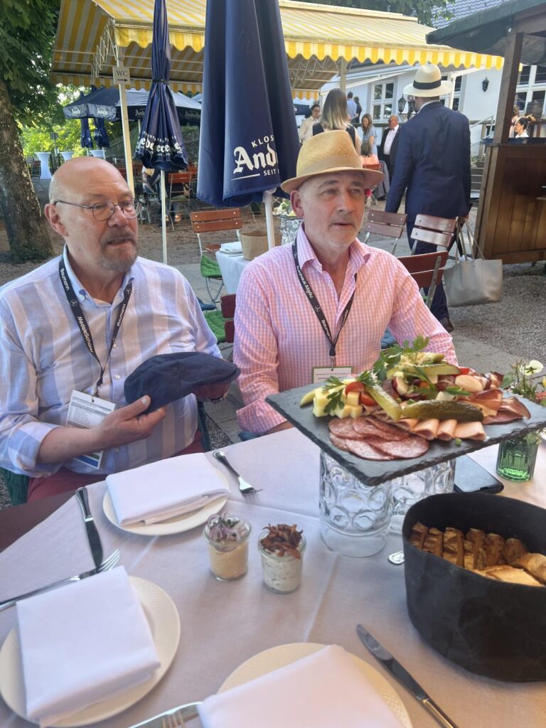 Ab 18.30 Uhr wartete die bayerische Brotzeit auf uns. Wir ließen es uns schmecken und wurden auch satt. Die Busse brachten uns wieder gut ins Hotel. Mit einem Absacker“ ging ein sonniger und interessanter Tag zu Ende, bei Ilona und Andreas sogar mit einem Tänzchen.