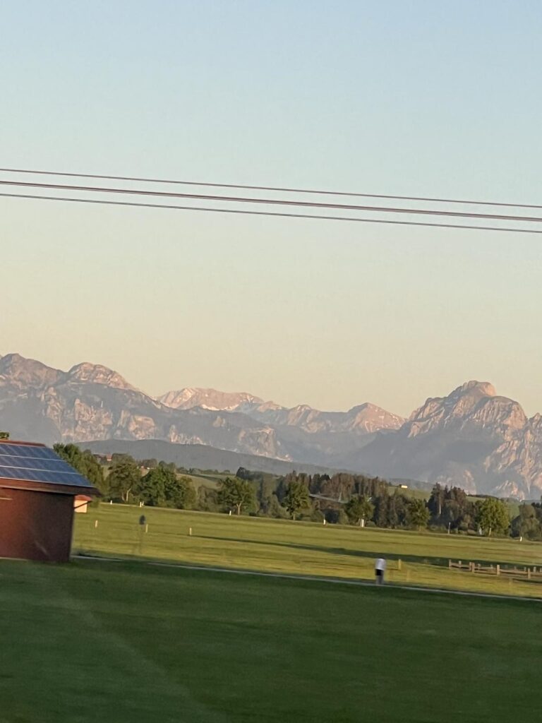 Diesmal trat ich die Anreise alleine an, wie 2019 nach München, da ich zuvor am Kochelsee Verwandtschaft besucht hatte. Deshalb hatte ich es am Donnerstag auch nicht weit, und so fuhr ich gemächlich über Landstraße nach Sonthofen und genoss schon das idyllische, grüne Alpenvorland.