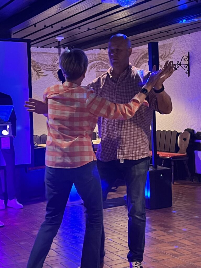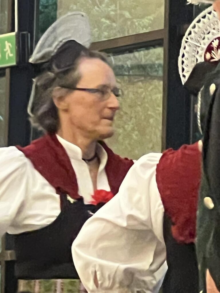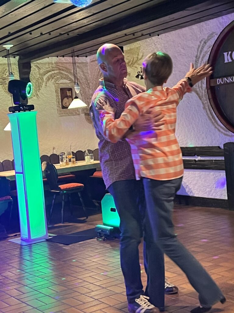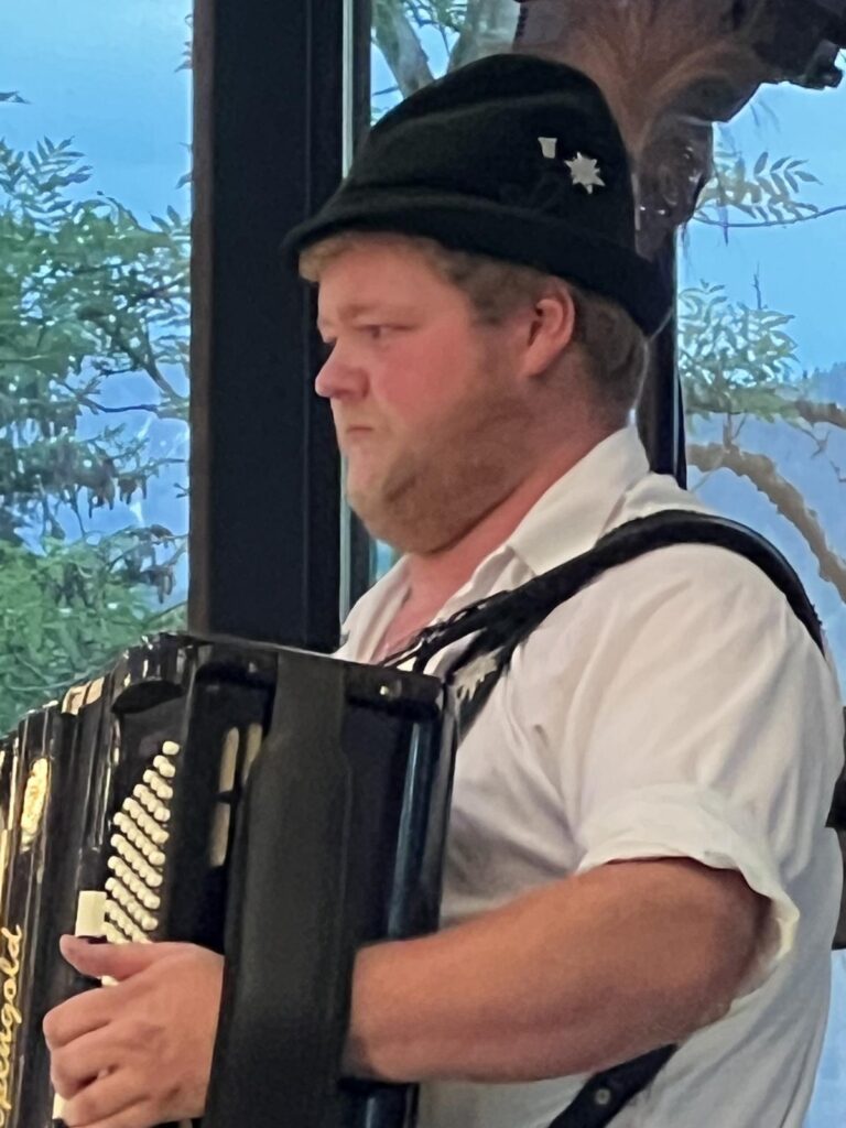Tja, was soll ich sagen, ich fand es etwas enttäuschend. Keine Dekoration, keine SL-Embleme und lange Tische, an denen man den Nachbarn den Rücken zudrehen musste, wenn man das Geschehen auf der Bühne verfolgen wollte. Das bunte Programm bestand aus drei Auftritten eines Akkordeonspielers, zwei Auftritten einer Senioren-Trachtengruppe einem Auftritt einer Jugend-Trachtengruppe. Große Begeisterung strahlten alle nicht aus. Dann: Ziehung der Tombola… und das wars! Wir verzogen uns anschließend noch eine Weile auf die Außenterrasse vor dem Hotel. Kein idyllischer Ort. Man musste sich sein Getränk von drinnen selbst holen, aber wenigstens konnten wir uns gut unterhalten. Obwohl wir ja nun nicht spontan im Hotel aufgekreuzt sind, hatte man das Gefühl von Überforderung.