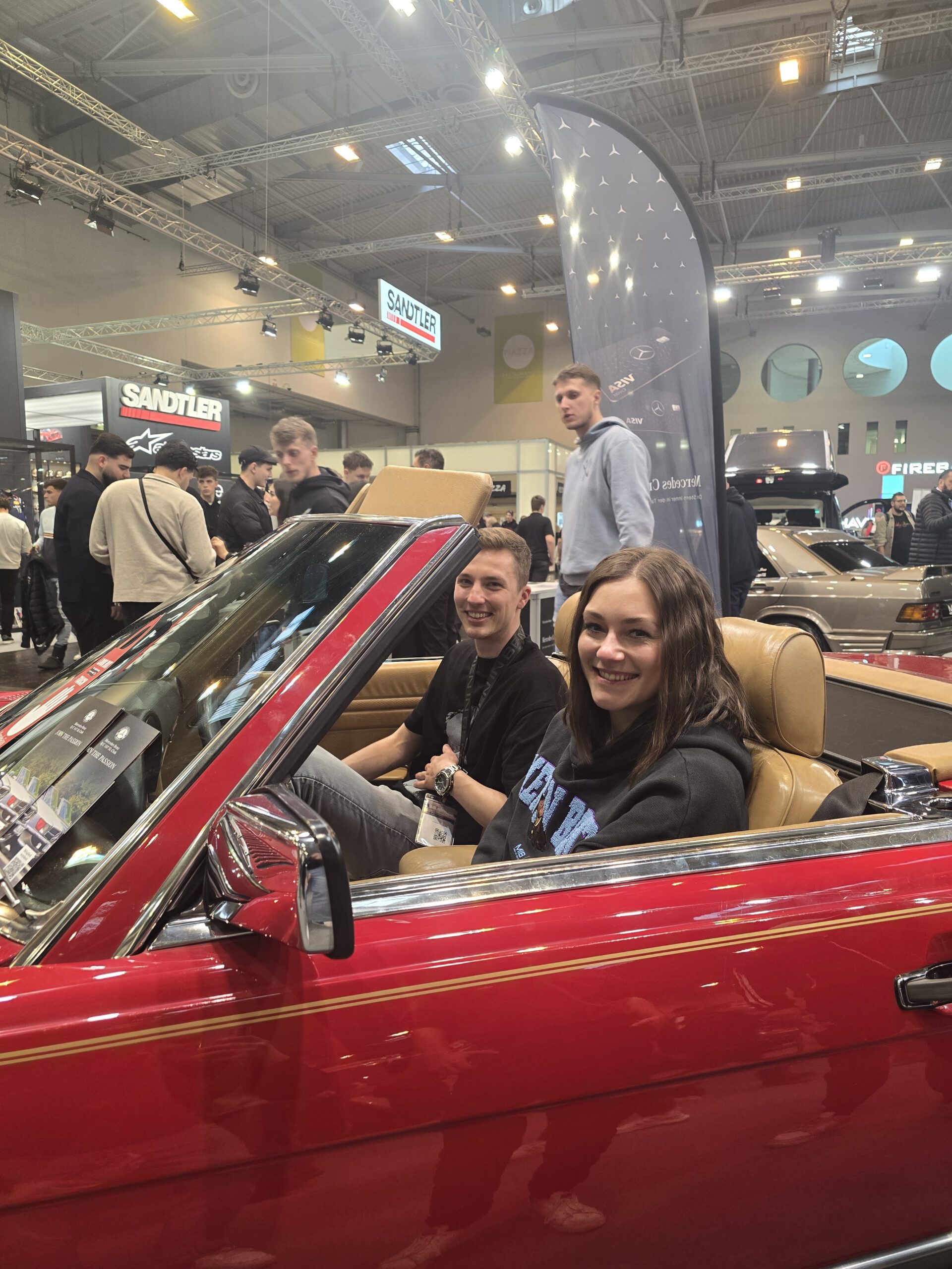 Signalroter 560SL von 1987 und immer erkennbar mit dem Kennzeichen S-JR 560H