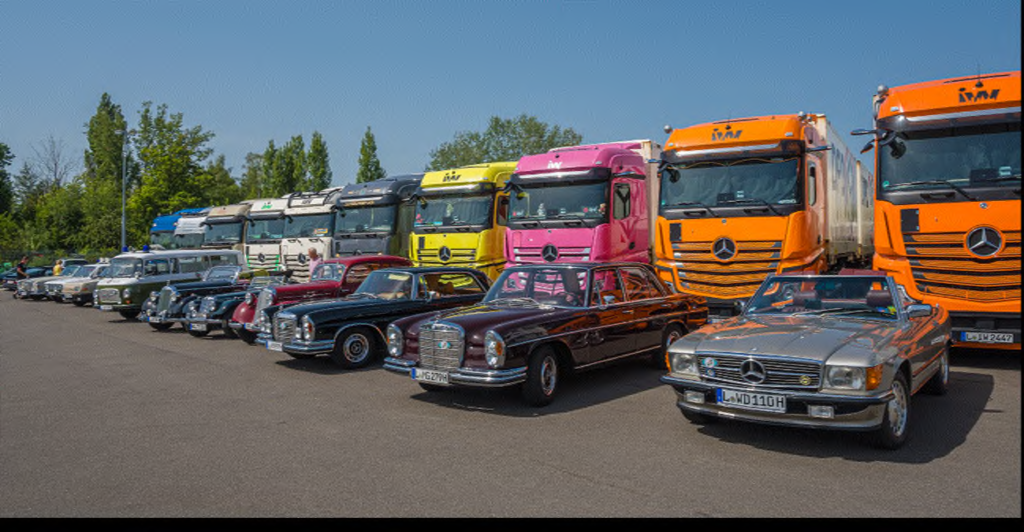 Die riesigen Bagger sind, genau wie Oldtimer, Zeitzeugen der technischen Evolution. Obwohl Mercedes die Fähigkeit zur „Evolution“ spätestens seit 1989 mit dem W201 als Homologationsmodell für die DTM Programm auf und unter dem Blechkleid beweist, hat der „Evo“ seine Wurzeln letztendlich auch in Dinosauriern wie der roten Sau (AMG 300 SEL 6.8) oder dem R107 Rallye (450 SLC 5.0). Bei aller schwäbischer Evolution, unsere 107er besitzen als überlebende Fossilien noch einen Antriebsstrang, dessen Herz in 6- oder 8 Zylinder Zündreihenfolge schlägt und durch dessen Venen noch oktanreicher Ottokraftstoff strömt. Natürlich alles ohne digitalisieren Herzschrittmacher oder einen Kompressor als Rollator.