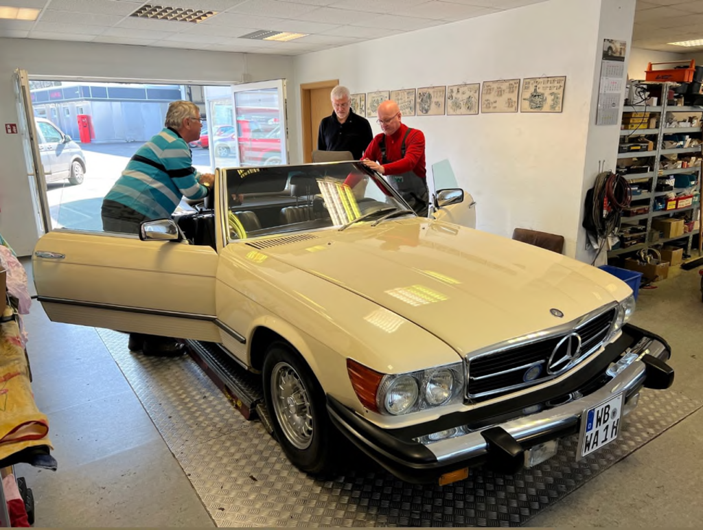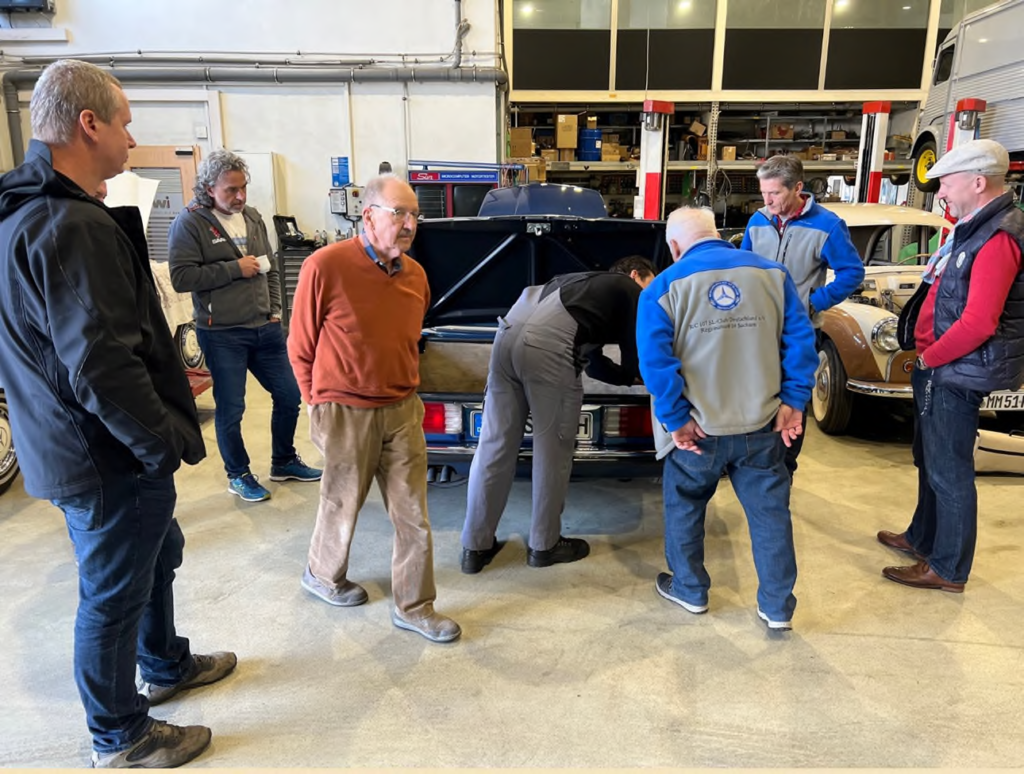 Aufgeteilt in technik- und kochaffine Teilnehmer konnten die Schrauber sich in der Oldtimerwerkstatt der IW Classic GmbH in die technischen Details ihrer 107er vertiefen und durch die fachkundige Betreuung der Mechaniker viel über ihre automobilen Lieblinge lernen.