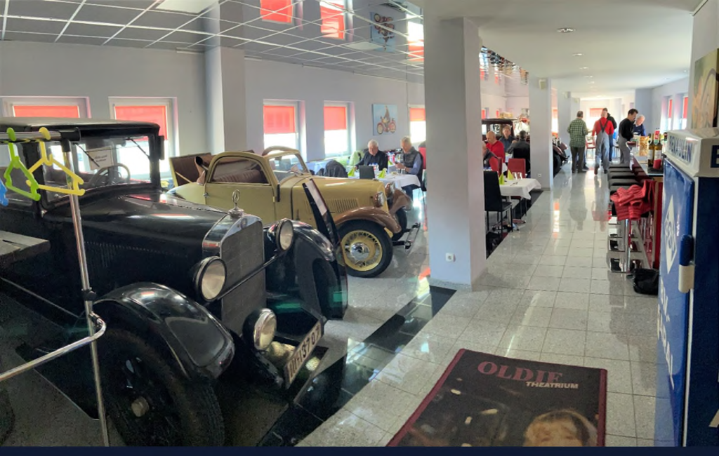 Zeitgleich bereiteten die meist weiblichen Lieblinge im Oldie-Theatrium kulinarischen Gaumenkitzel für das Mittagessen zu. Umgeben von herrlich restaurierten Oldtimern bietet diese Lounge u.a. für Feierlichkeiten ein automobiles Ambiente der besonderen Art. Zum Seminar stand es dem RT 04 und seinen Gästen exklusiv zur Verfügung. 3