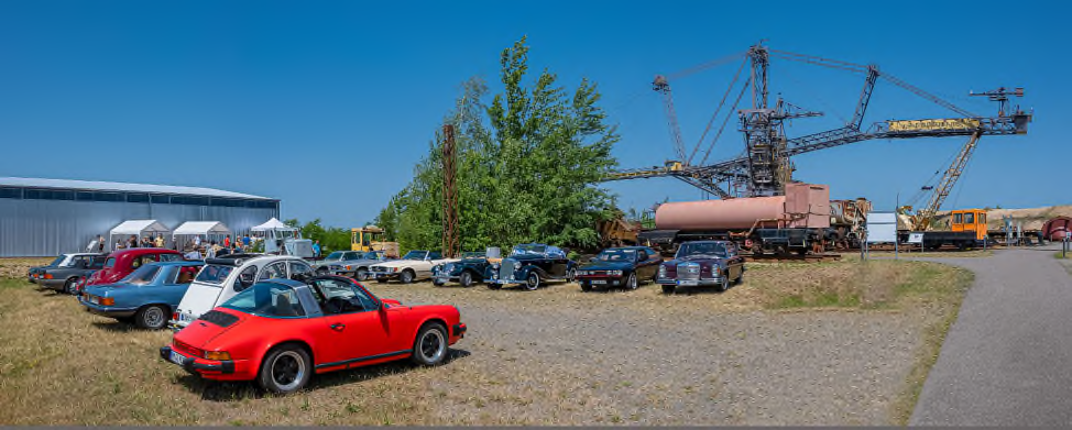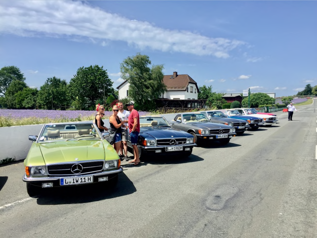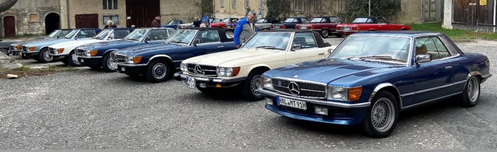 Auch wenn die evolutionäre Stammlinie des SL durch den R129 – R232 gesichert ist, steht dem Verbrenner doch ein ähnliches Schicksal wie den Braunkohlebaggern bevor. Oldtimerclubs bieten der vom Aussterben bedrohten Antriebstechnik ein automobiles Schutzgebiet. In derartigen Reservaten sind auch den 107er Stämmen asphaltierte Lebensräume geblieben. Dort leben viele Oldtimer in einem Biotop aus Garagen und Stellplätzen und erfahren liebevolle ambulante Seniorenpflege beim betreuten (Aus-)Fahren. Immer noch besser als die Zulassung entzogen zu bekommen und abgemeldet ins Museum abgeschoben zu werden. Unsere Ausfahrt durch das Leipziger Neuseenland bei Temperaturen von über 36 Grad beweist dabei eindrucksvoll, wie vital, rüstig und leistungsfähig die Technik der bunt gemischten Fahrzeugtypen ist.
