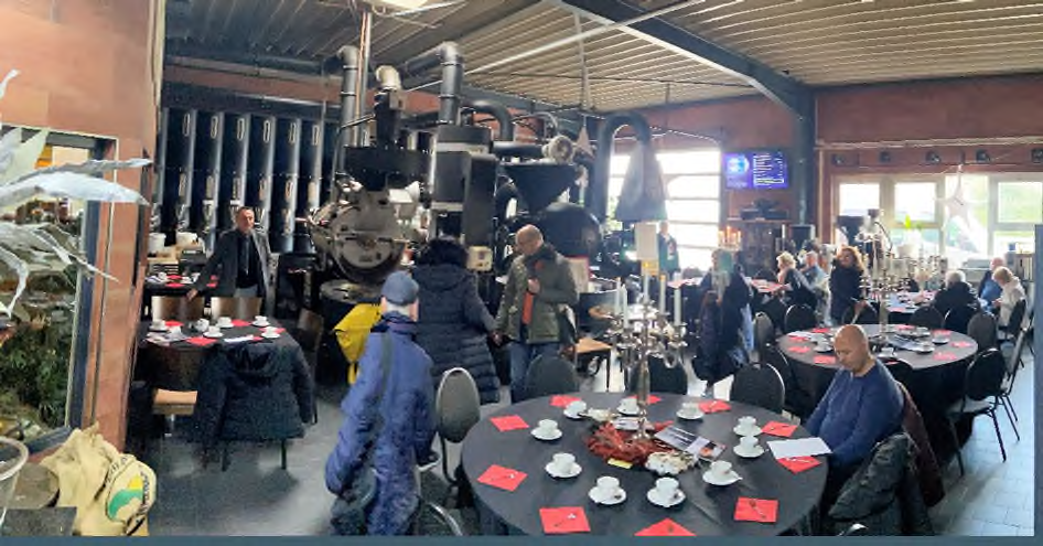 Da der SL aber kein Denkmal sondern ein Fahrzeug ist, ging es in der dritten Etappe auf zur sehr empfehlenswerten Kaffeerösterei „Moness“ nach Balgstädt, um „Erstma ä Schälchn Heeßen zu trinkn“. Schön “sieße” muss er sein, der Kaffee, und dazu ein großes Stück Kuchen. Die innovative 4.0 Bedienung war zwar stets bemüht, kann sich aktuell aber noch eine Scheibe von der technischen Zuverlässigkeit eines 107er abschneiden. Möglicherweise lag es aber auch nur daran, dass die Voice Control der FTS (Fahrerlosen Transportfahrzeuge) der sächsischen Sprache nicht mächtig war. Der kollektive Austausch von Kaffeekännchen kompensierte dies und bewies erneut den Teamgeist im RT04.