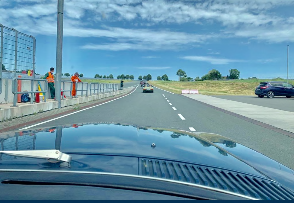 Nach einer ersten Besichtigung der historischen Rennboliden und einer kleinen Stärkung starteten alle 15 SL`s und SLC durch die Boxengasse auf die Rennstrecke.