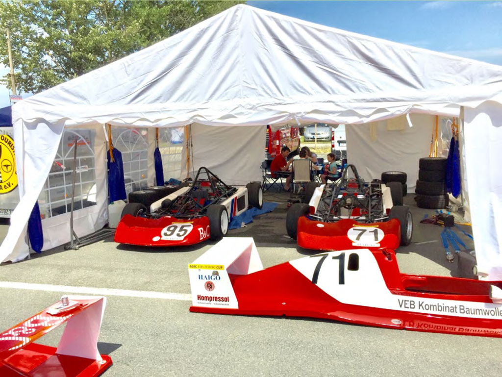 In Schleiz angekommen hörten wir schon den Sound der legendären Rennstrecke und durften die 107er auch direkt im Fahrerlager aufgereiht abstellen, ein Parc fermé der Sonderklasse.