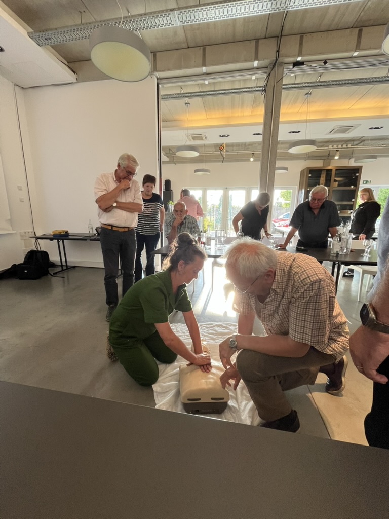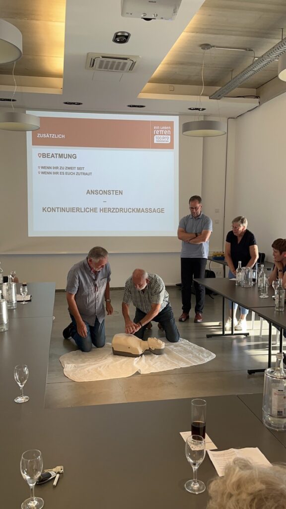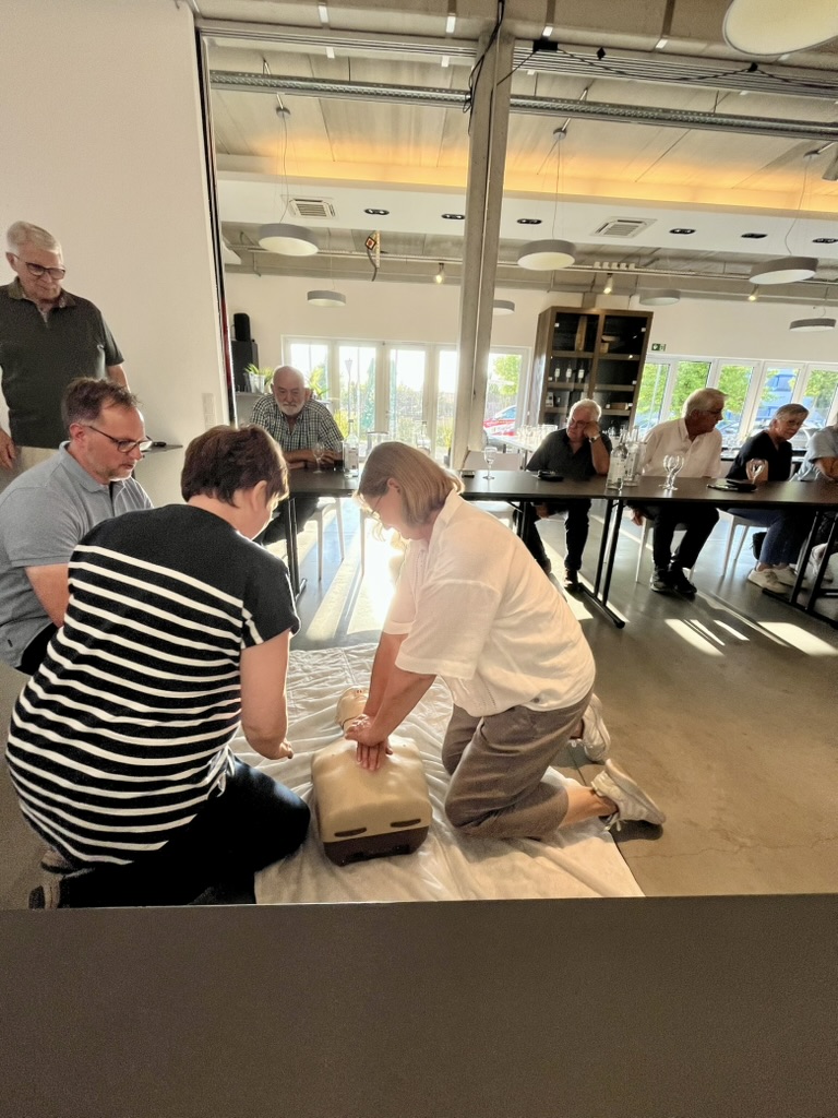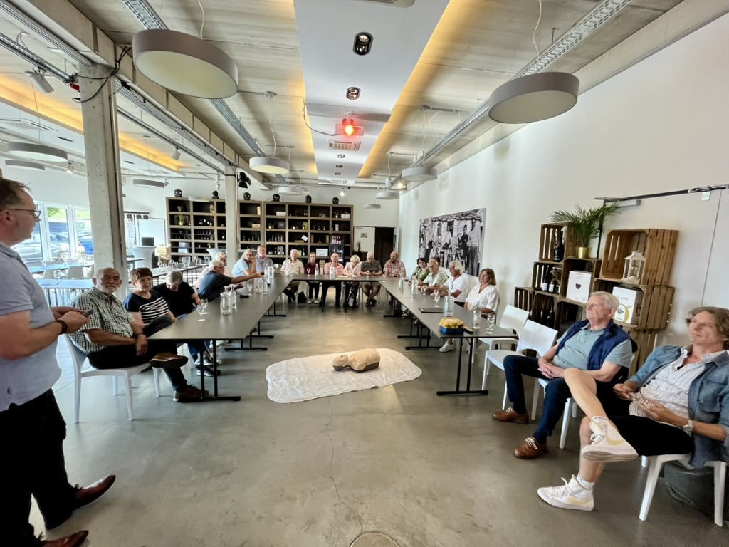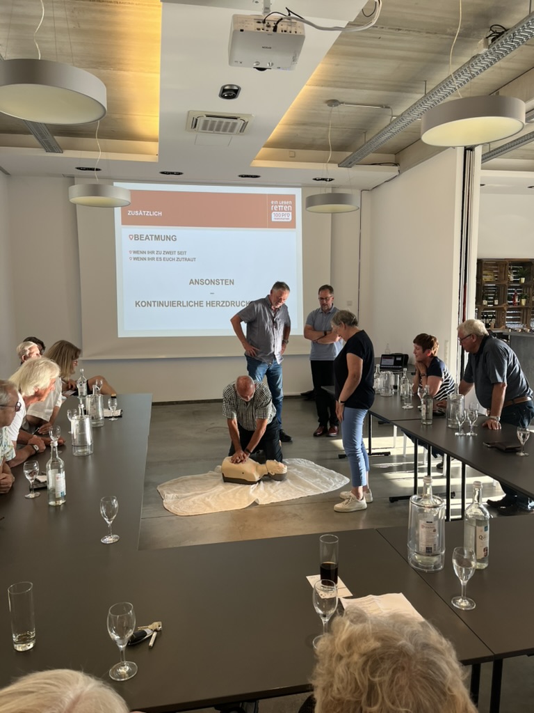 Am Donnerstag, den 17.07.2025 trafen sich 20 Mitglieder des RT 41 in der „twenty seven Eventlocation“ in Kaarst zur einer Schulung „Reanimation: Lebensrettende Sofortmaßnahme bei Herzstillstand“. Herr Marc Zellerhoff, ärztlicher Leiter der Rettungsdienste im Rhein-Kreis Neuss und aktiver Notarzt, vermittelte in Theorie und Praxis die Grundlagen für eine erfolgreiche Wiederbelebung.