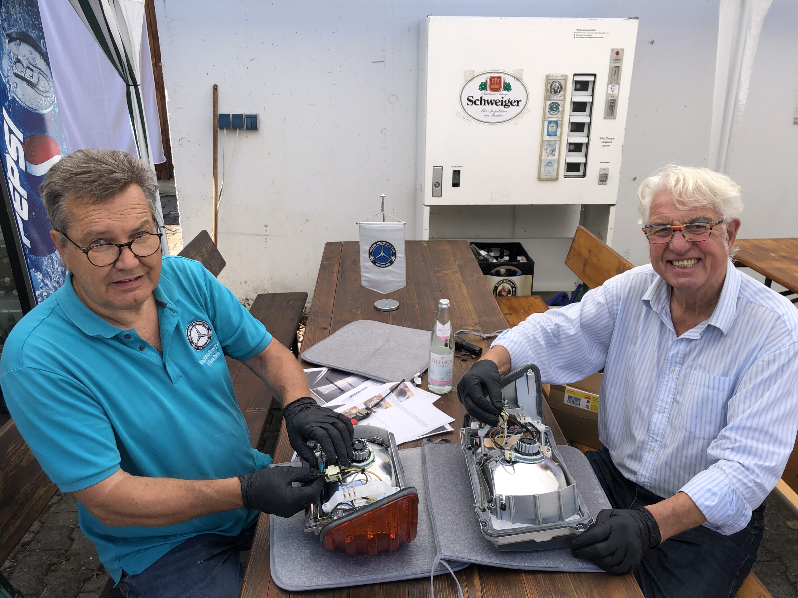 Ein Teilnehmer nutzte auch die Gelegenheit die neuen LED-Lampen unter fachlicher Anleitung in seinem Auto einzubauen, was hervorragend funktionierte.