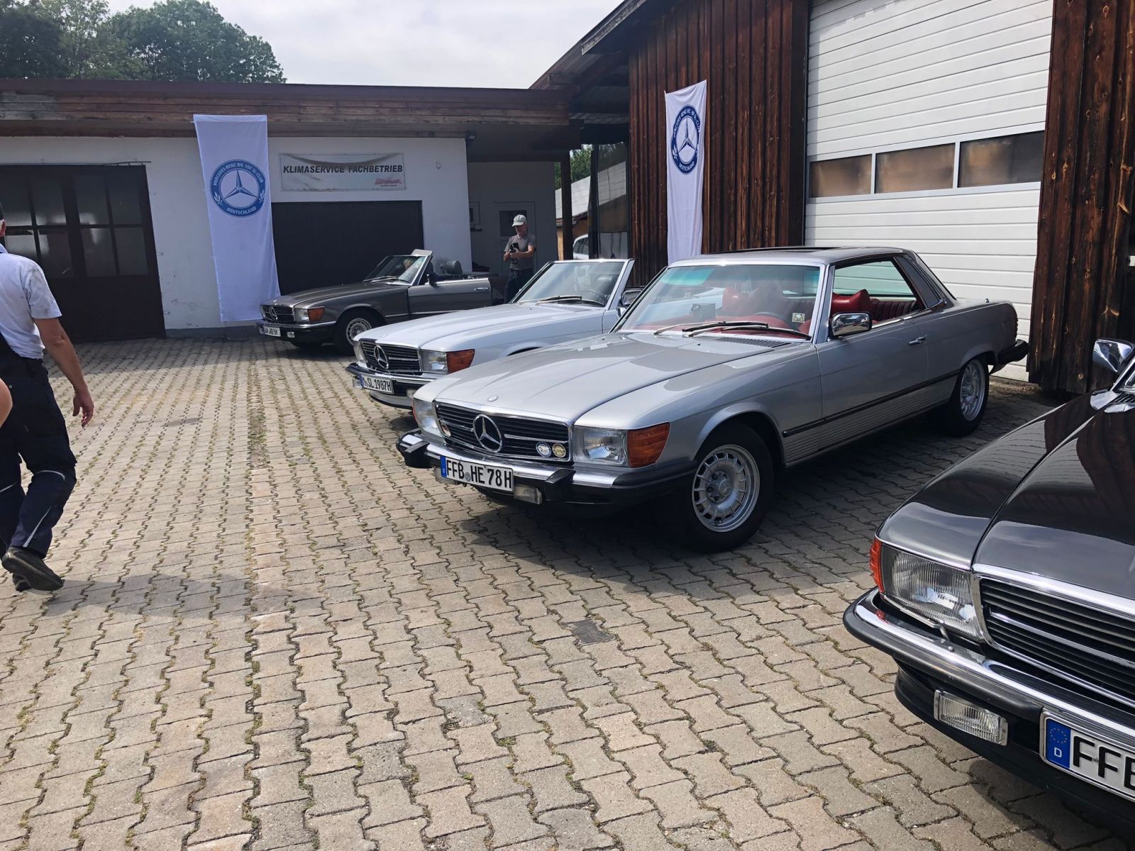 Dankeswerterweise hat unser Mitglied Hans Markus Wellers, den viele von uns als unseren langjährigen Club-Webmaster und Redakteur des Technik-Lexikons kennen, mit seinem Sohn seinen Hof mit Werkstatt mit 2 Hebebühnen zur Verfügung gestellt. So trafen sich an einem sonnigen Samstag 19 Mitglieder mit ihren Fahrzeugen in Neuching bei München und das schon zum 20. Mal (Bild 1 und 2). RT-Leiter Ralf Nehring hat dies zum Anlass genommen, Hans-Markus für seine langjährige Unterstützung zu danken und ihm eine Urkunde zu überreichen (Bild 3).