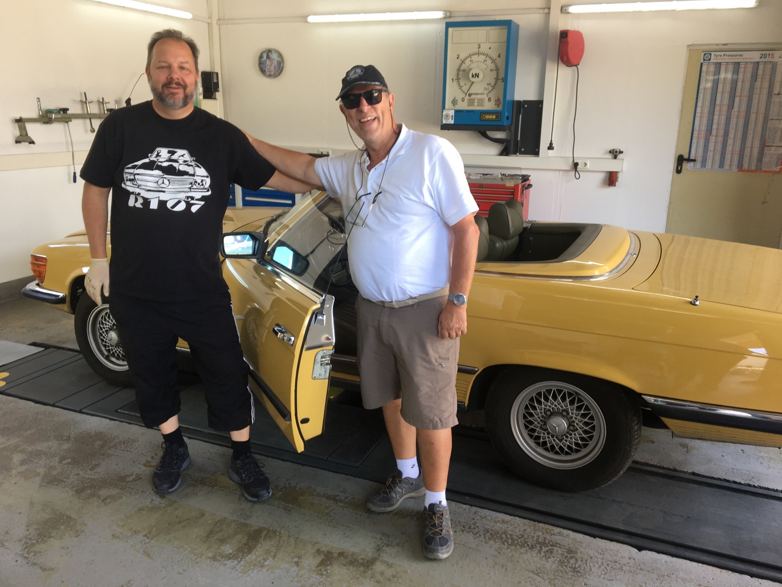 Ich hatte gem. den Anmeldungen einen Ablaufplan und Checklisten erstellt. Herzlichen Dank auch an dieser Stelle an den RT 83, dessen Formblätter wir nutzen konnten. Leider ist kurzfristig unser Technikbeauftragter Dr.-Ing. Heiner Sattel ausgefallen, so dass mit Michi Huhmann nur ein „Prüfer“ zur Verfügung stand. Aber durch die Verfügbarkeit zweier Hebebühnen, der tatkräftigen Unterstützung von Werkstattbesitzer Hans Wellers, dem Sohn von Hans Markus und der Disziplin aller Teilnehmer konnten wir alle Fahrzeuge checken. Viele Besitzer sahen „ihren Liebling zum ersten Mal von unten. Dies wurde sehr dankbar angenommen und einige fuhren doch mit gemischten Gefühlen nach Hause,
