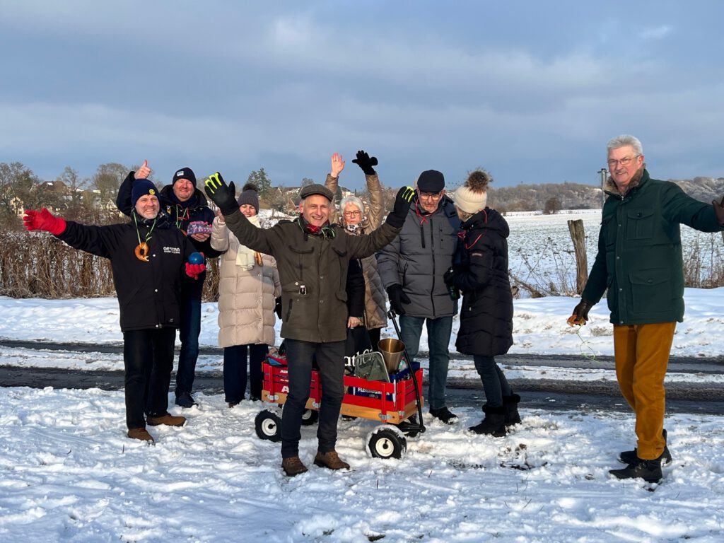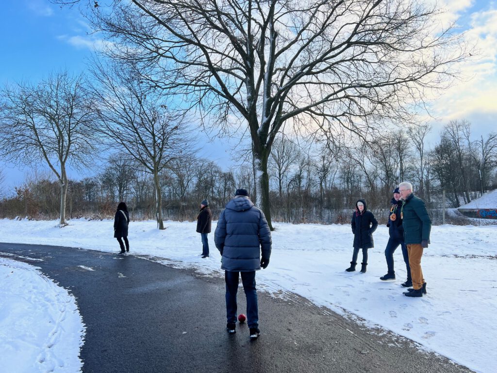 Unsere Organisatoren Hugo, Parwis und Bärbel hatten sich dafür eine Boßeltour überlegt. Mit sportlichem Tatendrang und viel Spaß siegte schließlich das Team Rot.