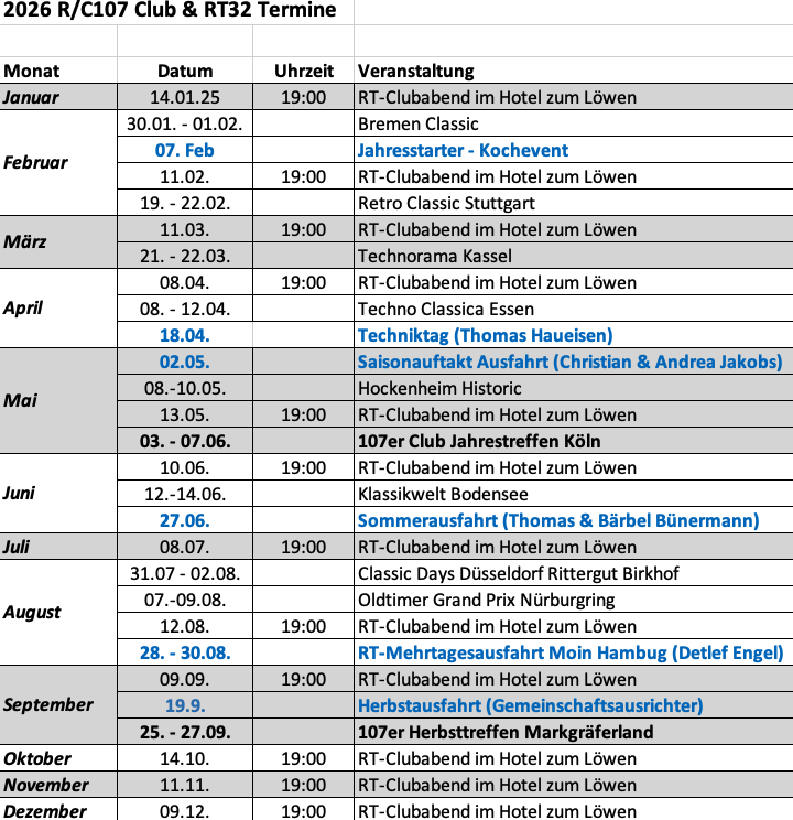 RT 32 Jahreskalender inkl. R/C 107 Club Messe-Präsenzen
