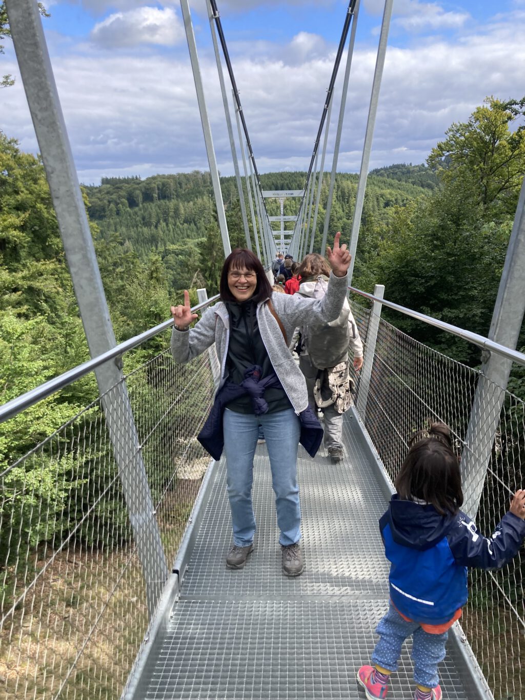 Auf dem Weg nach Winterberg haben einige Mutige die bekannte Fußgänger-Hängebrücke in Willingen überquert – eine ziemlich schaukelige Angelegenheit