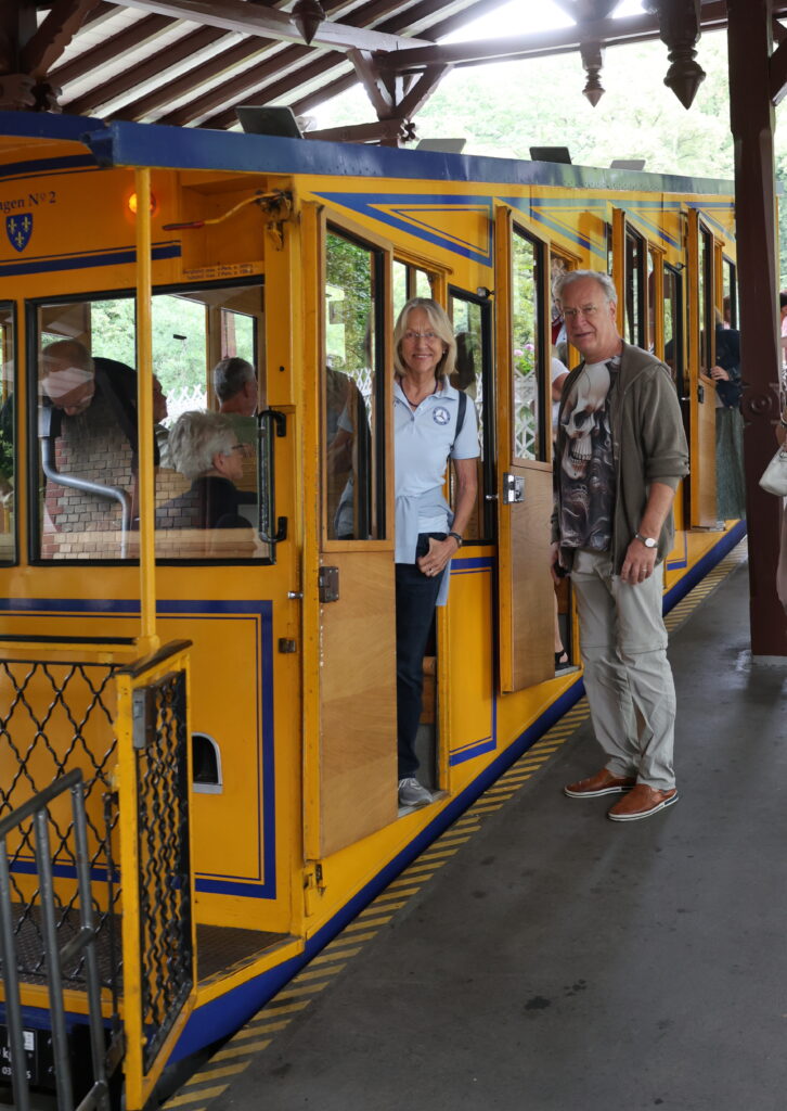 Am zweiten Tag holte sich das Orgateam regionale Verstärkung in Form unseres Clubkameraden Thomas Ruhl. Wir fuhren mit der Nerobergbahn und genossen Wiesbaden „von oben“. Einen tollen Dreiburgenblick hatten wir bei Petersberg um dann von dort zum Kloster Eberbach unsere heutige Tour fast zu beenden. In Eltville-Martinstal im „Gutsausschank Diefenhardt“ wurde für das leibliche Wohl gesorgt.