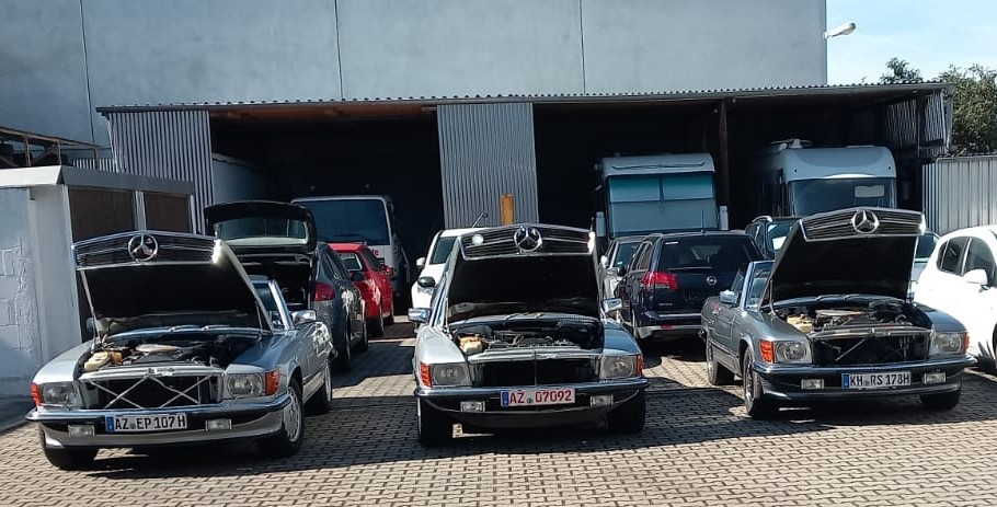 Bei schönstem Wetter traf sich der RT 67 Rheinhessen mit 12 Fahrzeugen am 20. September zum zweiten Techniktreffen im laufenden Jahr 2025. Immerhin 9 107er standen zur Begutachtung und für kleinere Reparaturen bereit. Zwei 129er und ein 123er Coupe unserer Clubmitglieder gesellten sich dazu.