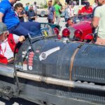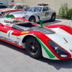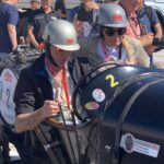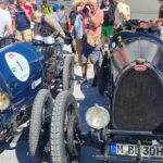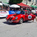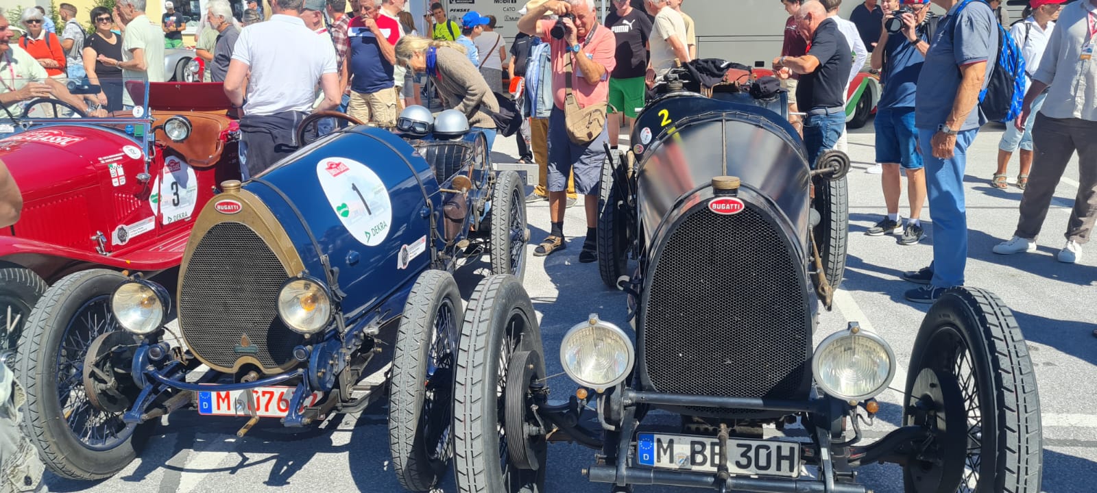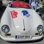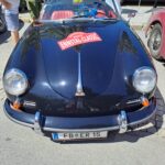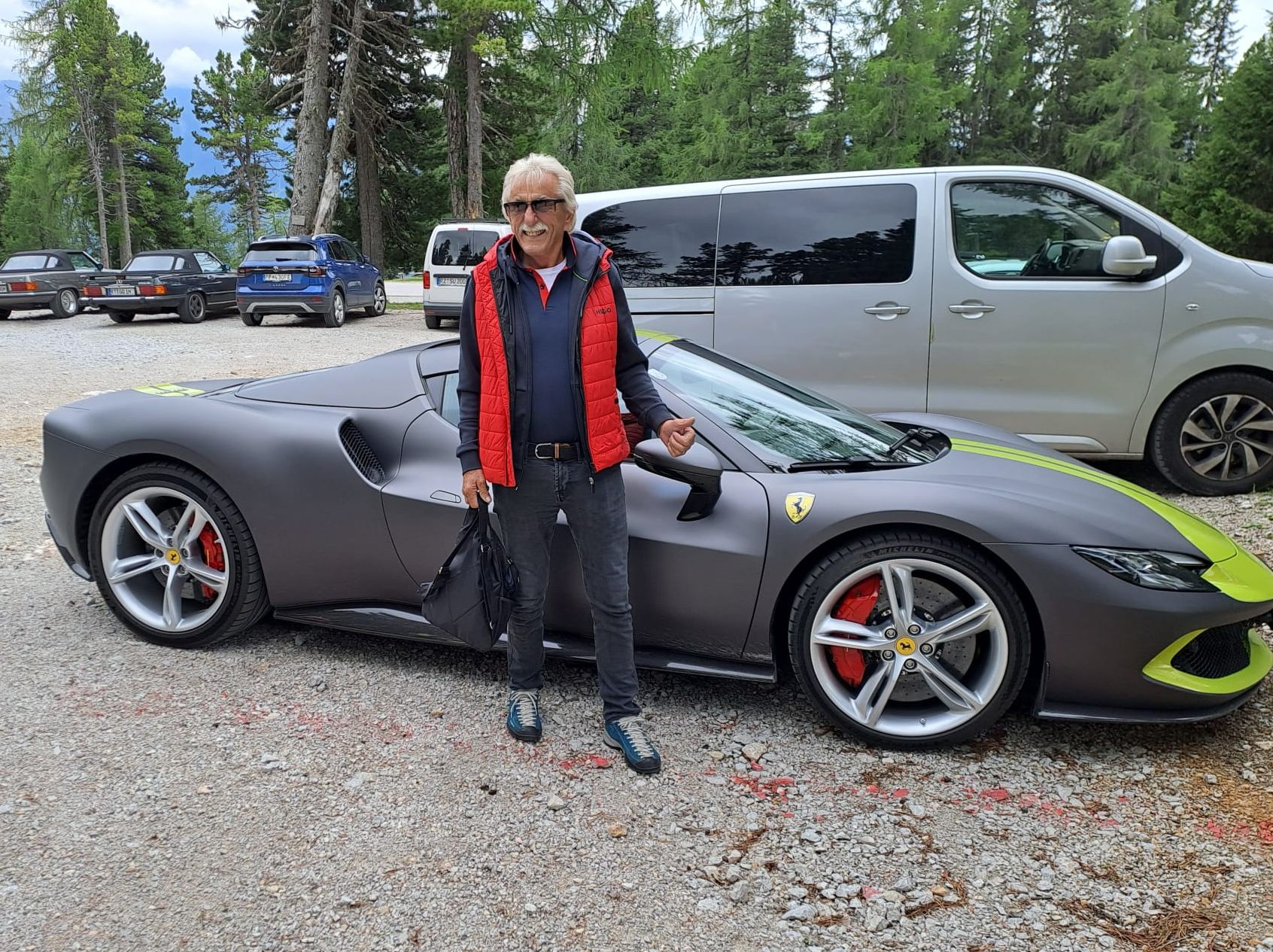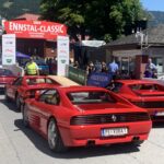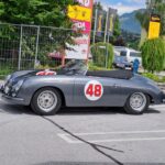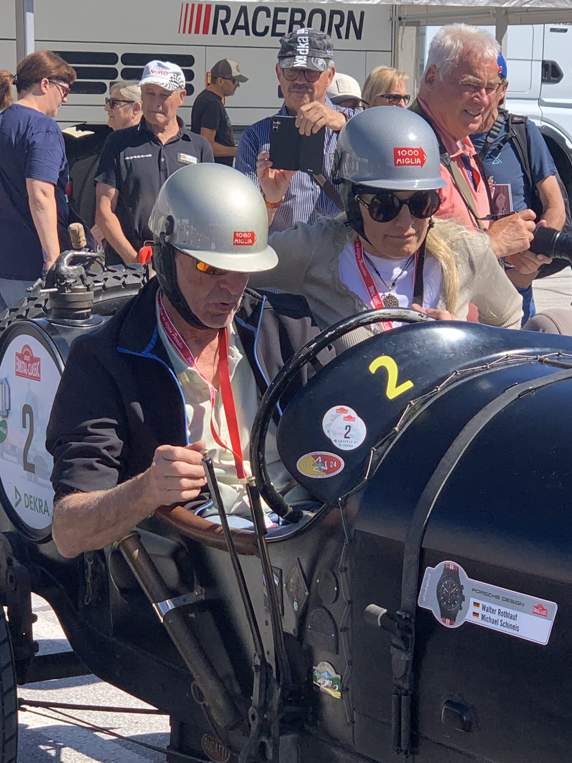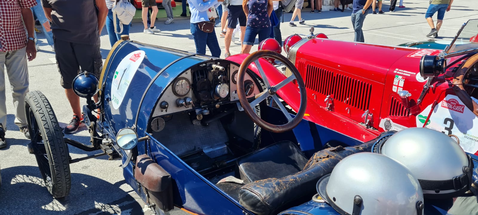 Die ältesten Fahrzeuge der 160 Teilnehmer waren 2 über 100 Jahre alten Bugattis eines Ehepaares aus München. Kurz vor dem Zieleinlauf (zurück von der Bergprüfung am Stoderzinken) gab es einen Schaulauf ganz besonderer Wagen. Auch Hans-Joachim Stuck fuhr mit seinem 962-er mit. Den trafen wir ja kurz zuvor im Dorf beim Kaffeeplausch mit Dieter Quester. Strietzel nahm sich gerne Zeit, um mit uns ein Fotoshooting zu machen.