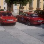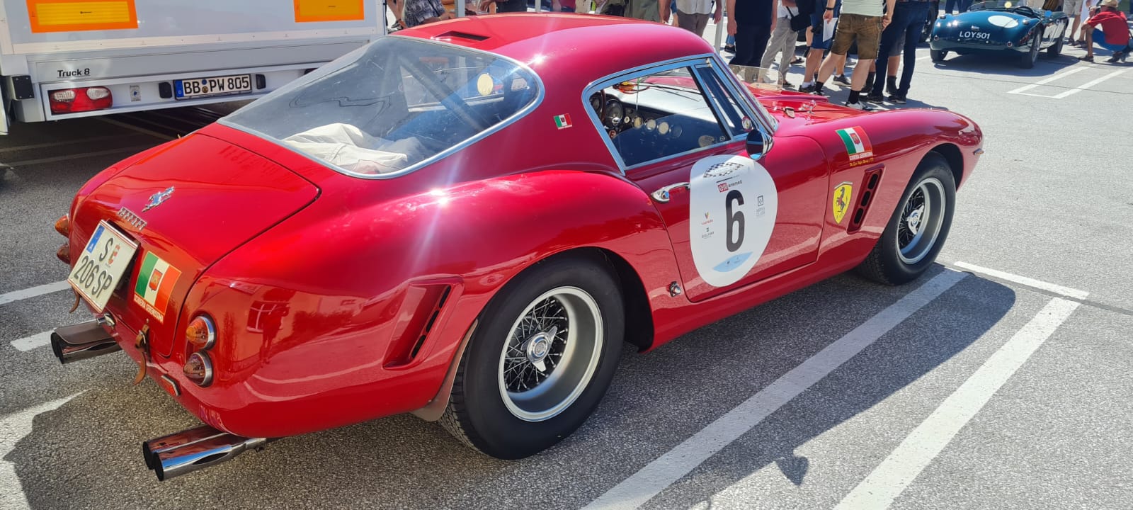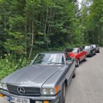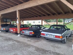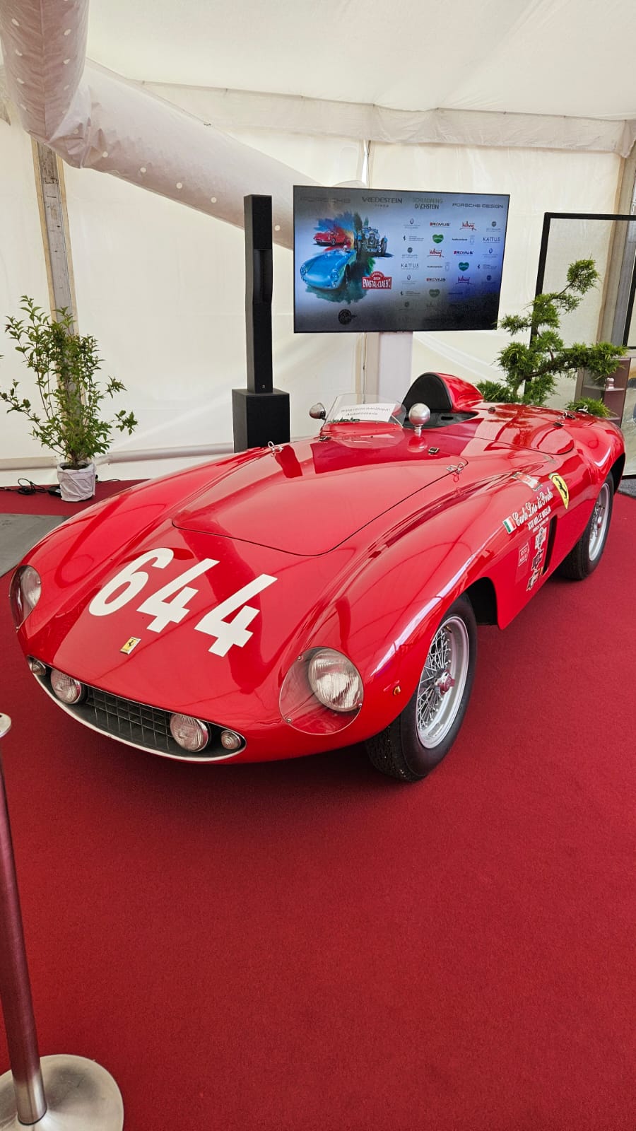 Ein Stuttgarter Autohaus schickte über seine lokale Filiale die rote Scuderia mit ca. 10 Oldies auf den Dorfkurs.
