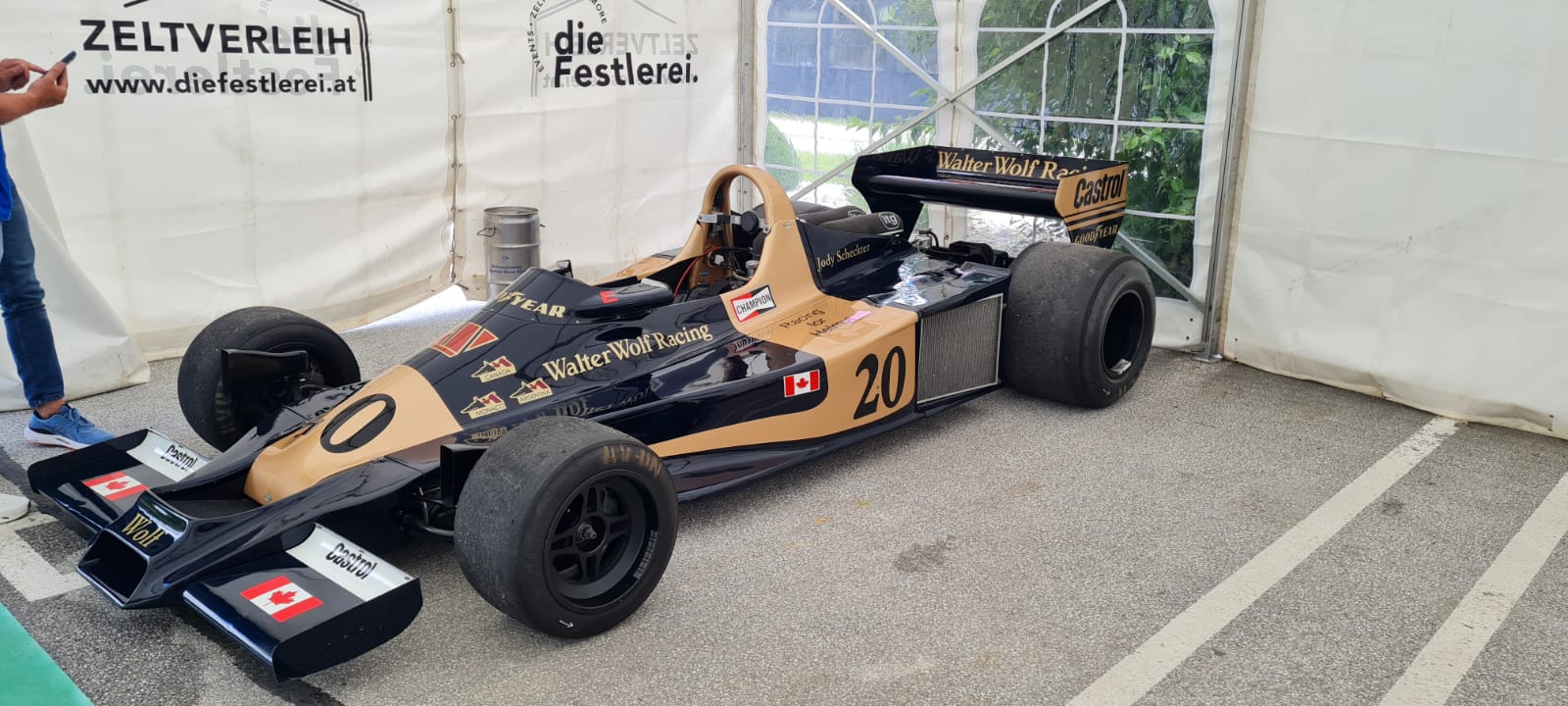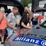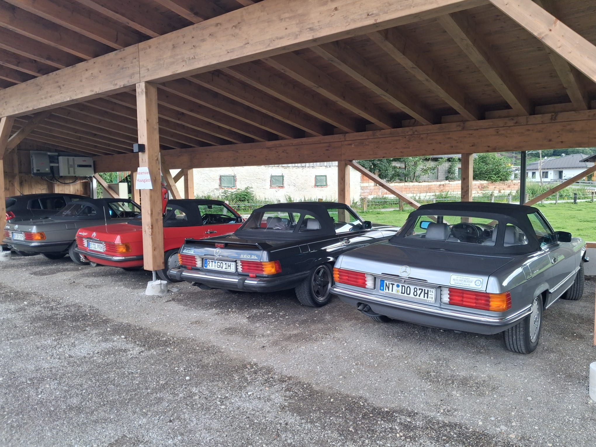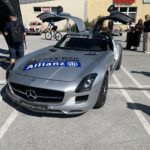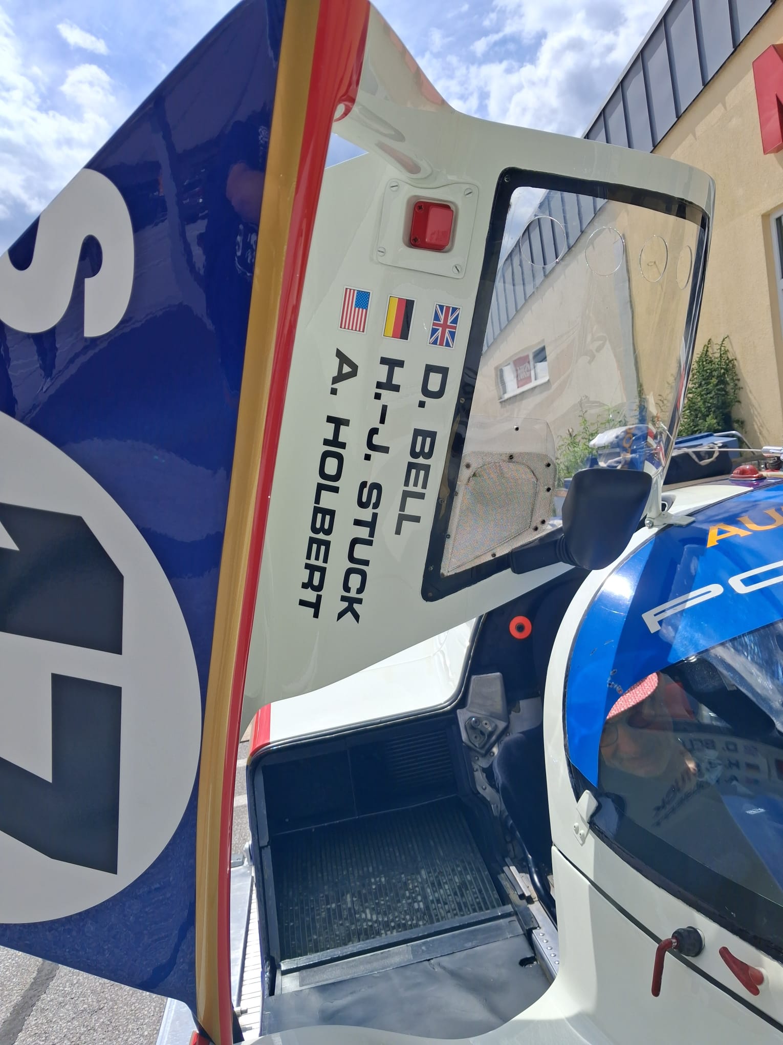 Mangels Parkplätzen in Gröbming ließen wir die SL im Carport und machten uns per Bus bzw. zu Fuß auf den Weg. Zuerst stand die große Fahrzeugausstellung auf dem Programm. Eine Besonderheit war, dass wir beim Abladen des Porsche 962 Gruppe C von Hans-Joachim Stuck zusehen konnten. Mit diesem Fahrzeug hatte er mit seinem Team die 24 h von Le Mans 1986 gewonnen. Bernd Mayländer gab an seinem Safetycar kräftig Autogramme.