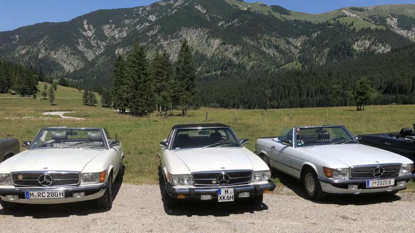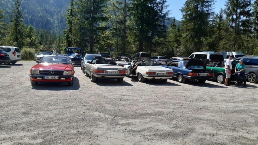Wir trafen uns um 09:00 Uhr an der Autobahnraststätte Höhenrain West. Insgesamt waren wir siebzehn 107er Fahrzeuge und ein Mini Cabrio ( auch ein sehr schöne Fahrzeug, nebenbei).