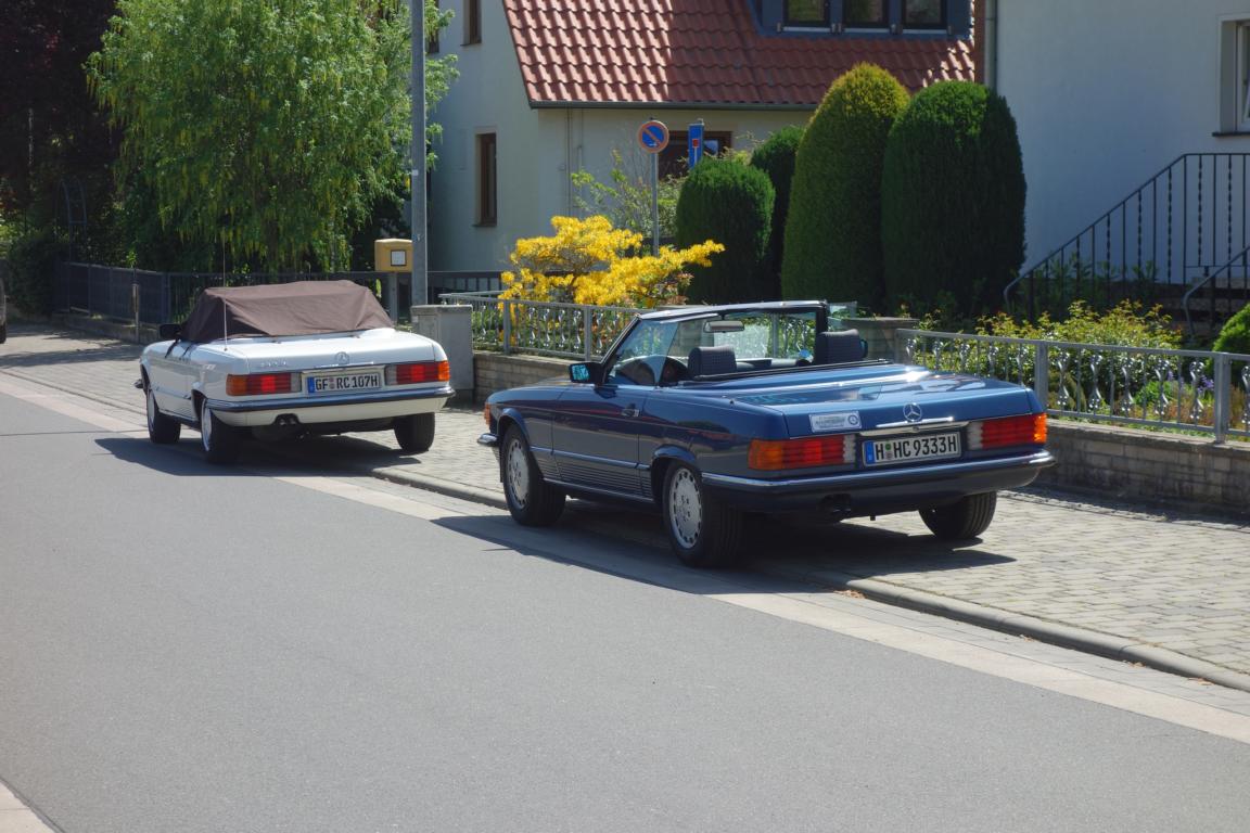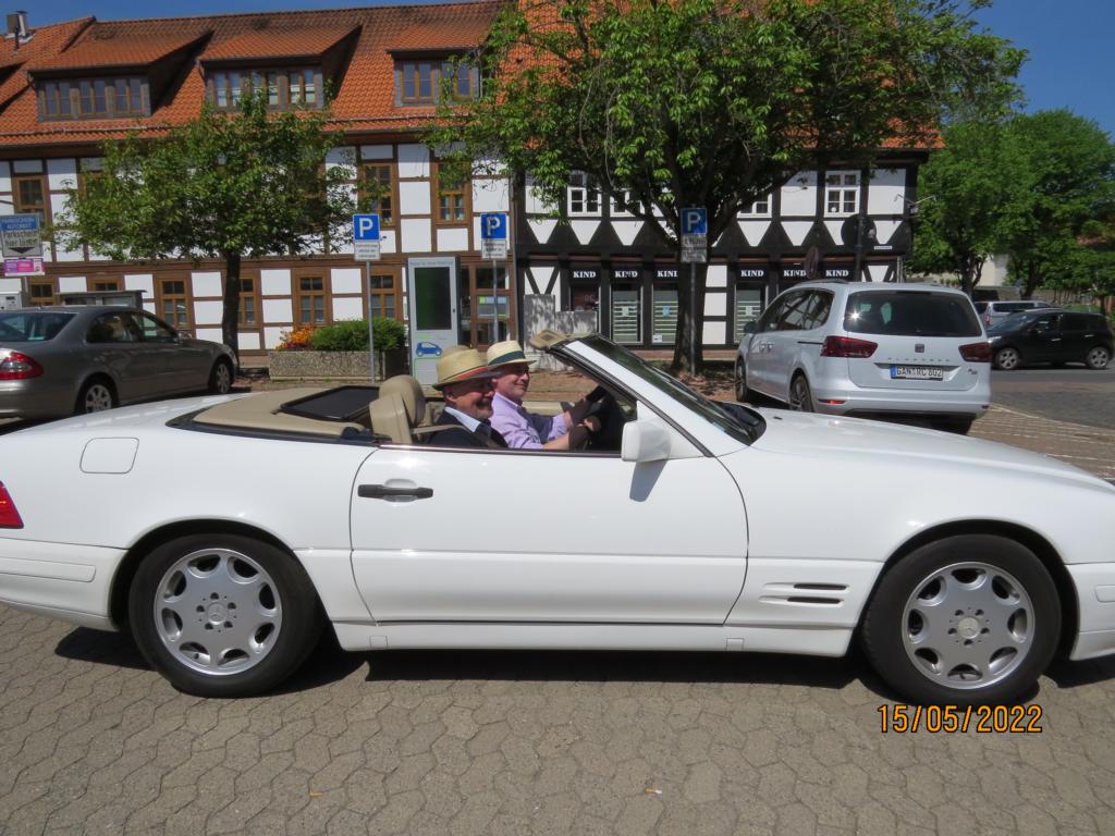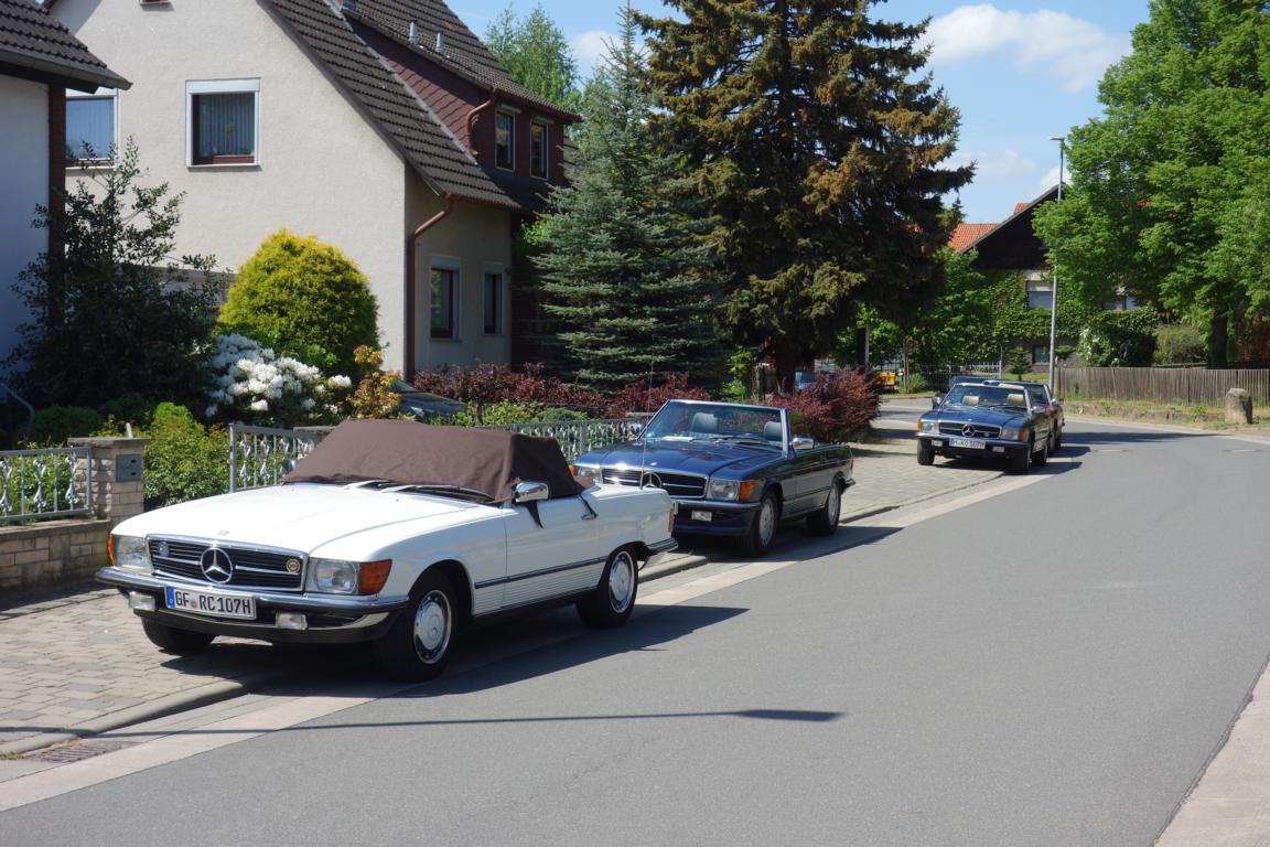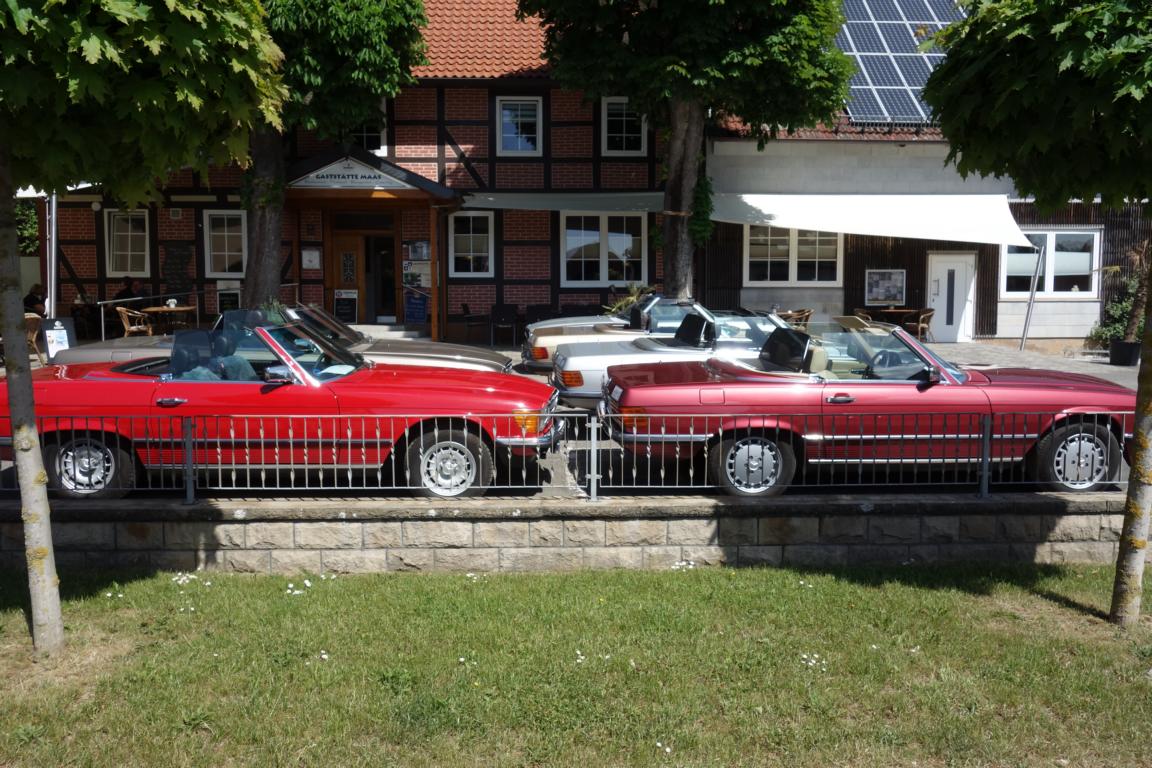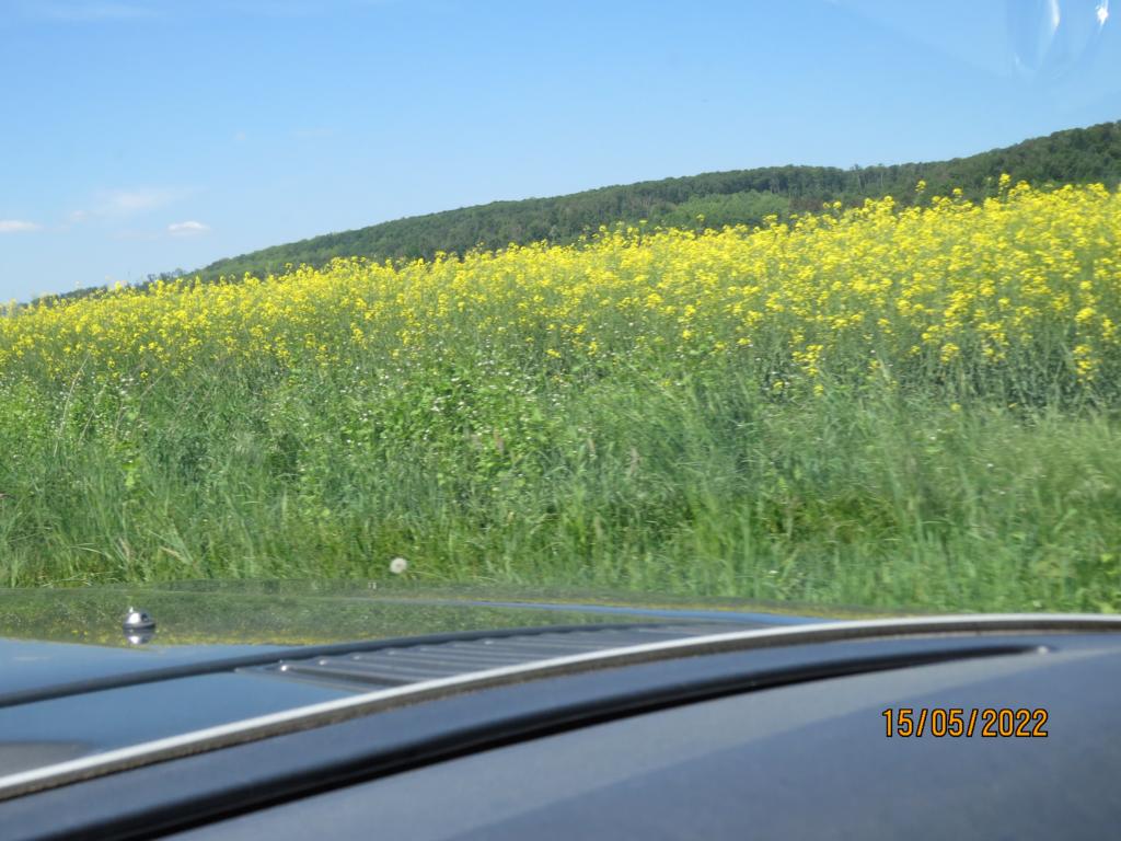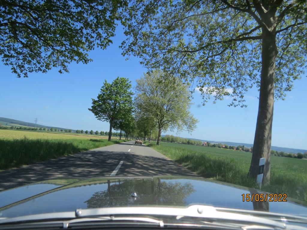 Auf alle Fälle ging es mir so bei unserer Saisoneröffnungsfahrt in diesem Jahr nach zwei Jahren Abstinenz. Und das Wetter meinte es gut mit uns = den ganzen Tag blauer Himmel + Sonnenschein, sodass wir standesgemäß mit offenem Verdeck fahren und so die Natur pur genießen konnten. Man hörte die Vögel zwitschern. Der Duft vom Raps stieg in die Nase, genauso wie der vom frischen Gras und die kühle Waldluft. Bei solchen Ausfahrten ist es mir immer schleierhaft, wie man (Rainer) so schöne Straßen finden kann. Unser Weg führte uns von einer Allee zur anderen mit reichlich Kurven und mit Höhen und Tiefen wie bei einer Achterbahn. Leider konnte ich kein Foto schießen. Es ging zu schnell. Es machte unheimlich Spaß und jedes Mal dachte ich:
