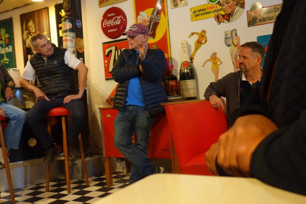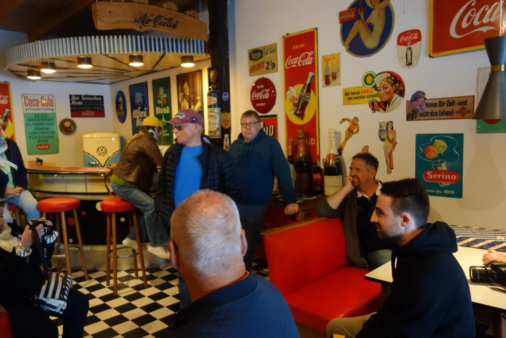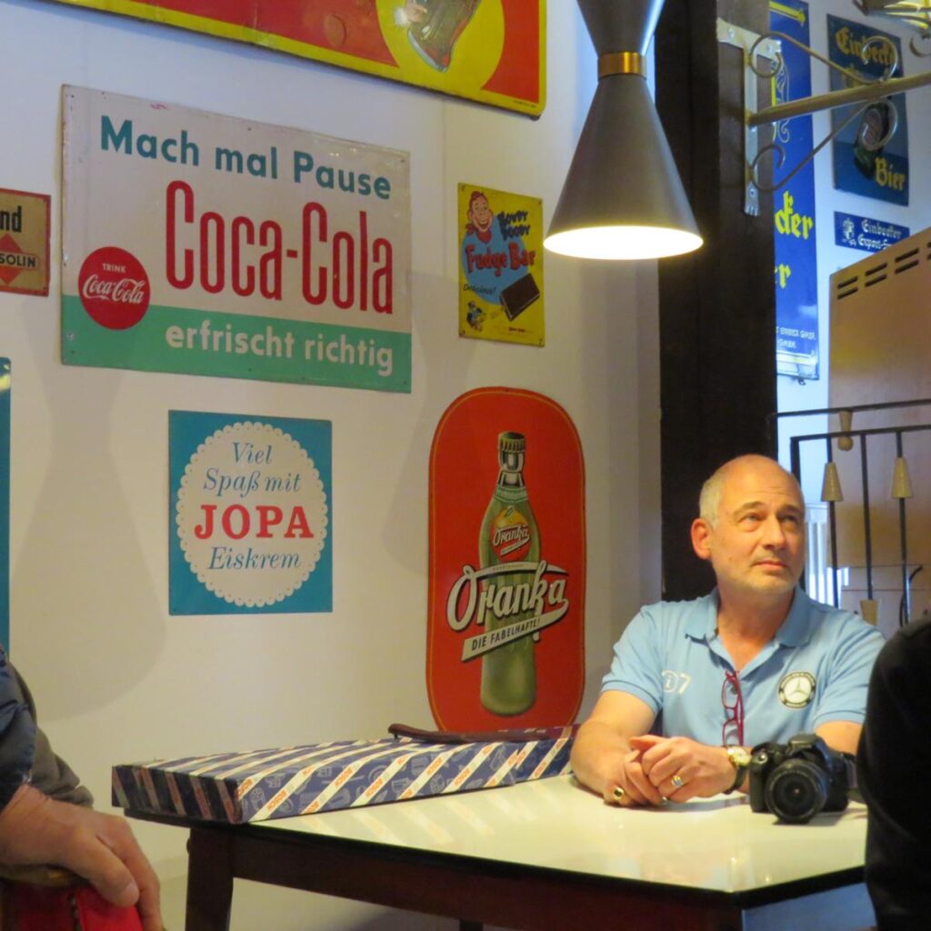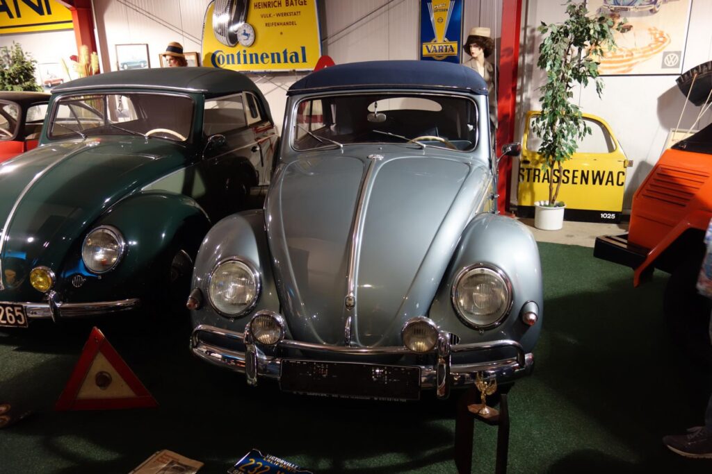 Das Café Bach, wo wir empfangen worden waren, erstrahlte im Stil der 50er Jahre und diente unter anderem als Kulisse für den Film Bandits mit Katja Riemann. Ja, die meisten Autos sind fahrtüchtig und werden auch mal ausgeliehen, zum Beispiel ein VW Käfer für den Film „Aenne Burda – Die Wirtschaftswunderfrau“ mit Katharina Wackernagel, und für Sonderausstellungen in Wolfsburg und Stuttgart.