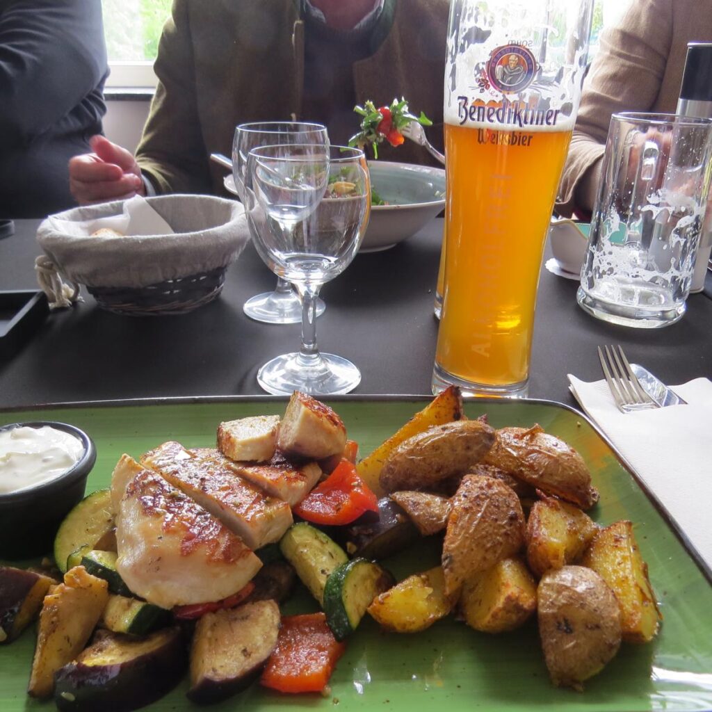 Wie heißt es so schön: Viele Wege führen nach Rom – und so hatten wir auch einen wunderschönen Weg – die Fahrt nach Bad Münder zum Restaurant „Royal Eventlocation“. Unsere Speisen hatten wir schon bei der Anmeldung mitbestellt, so dass das Mittagessen entspannt genossen werden konnte. Meine gegrillte Putenbrust mit Gemüse und Rosmarinkartoffeln war sehr lecker und reichlich.