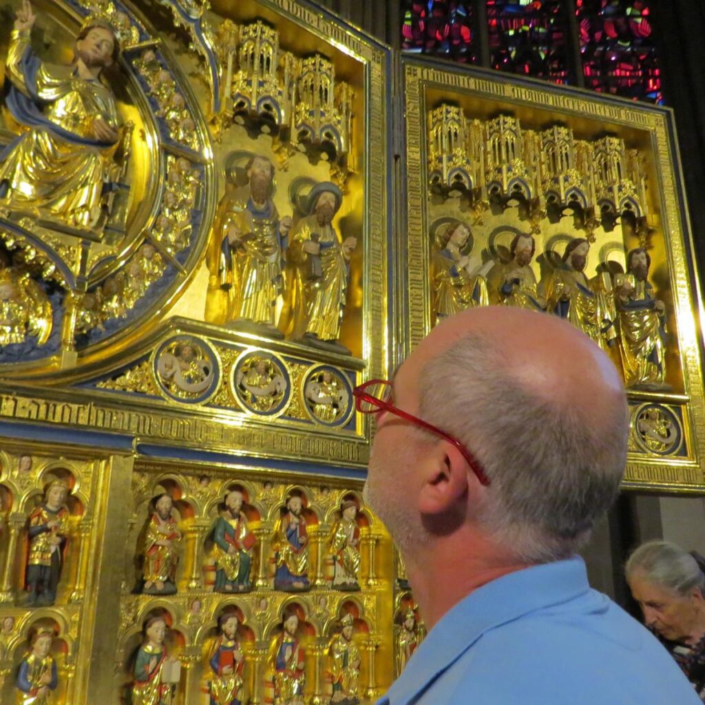 Weiter ging die Cabrio-Fahrt nach Minden zum Hotel „Lindgart“, im Zentrum gelegen und nur 500 Meter vom Rathaus entfernt, wo es eine Führung durch die Altstadt und den Dom gab. Besondere Schätze im Dom waren sowohl das Kreuz, welches in der Darstellung von Jesus ungewöhnlich ist, als auch der goldene Flügelaltar. Allerdings ist dieser eine Nachbildung des Originals, welches in Berlin steht, seine Vergoldung verloren hat und nicht wieder zurückgekauft werden konnte. Wie kam Minden zu seinem Namen?