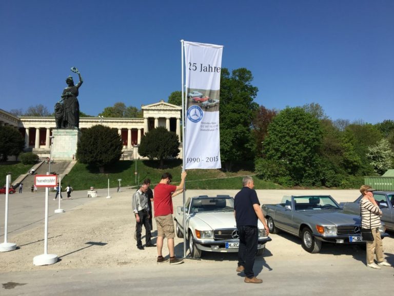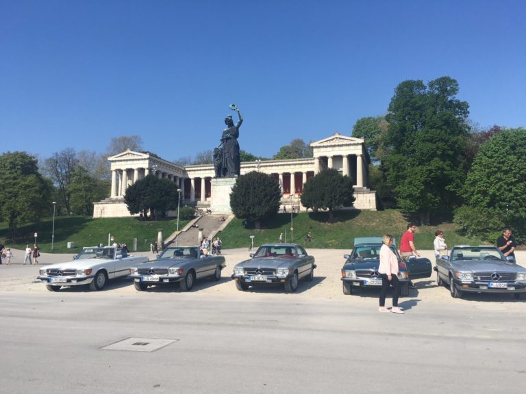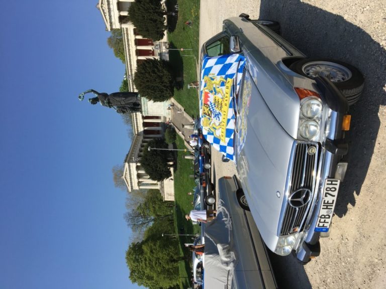 Bei herrlichstem Wetter parkten wir unsere Fahrzeuge mit direktem Blick auf die Bavaria.