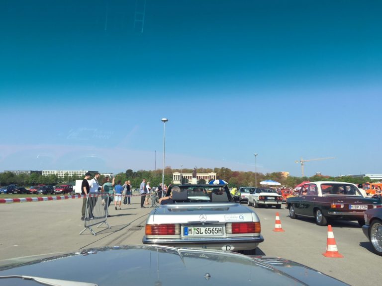 Unser Club traf sich auf dem Großparkplatz Westpark zur gemeinsamen Fahrt auf die Theresienwiese. Insgesamt waren wir 16 Fahrzeuge.